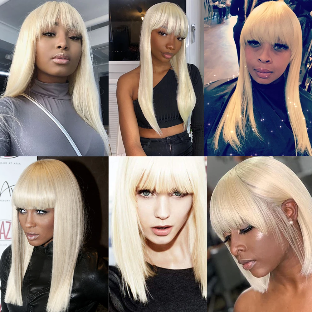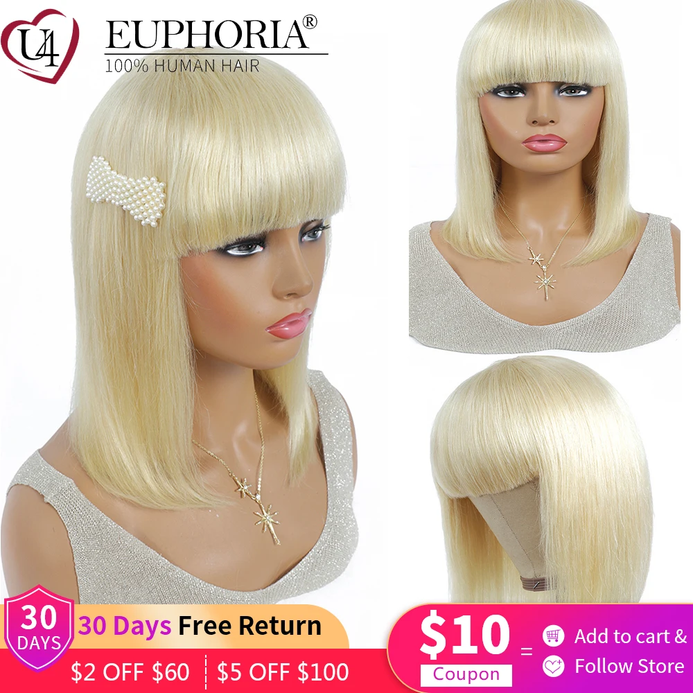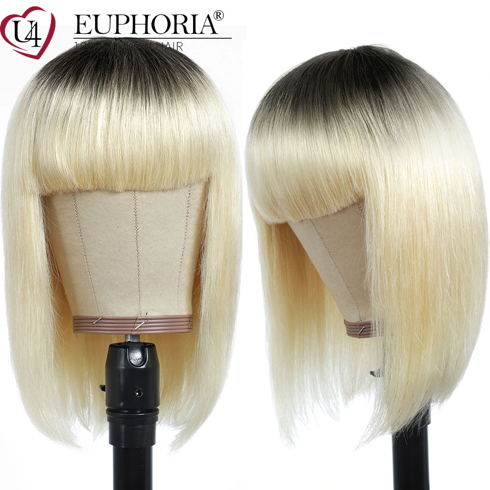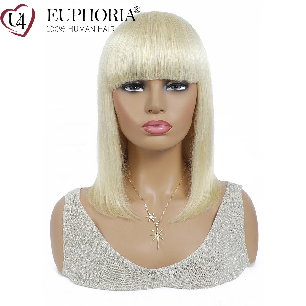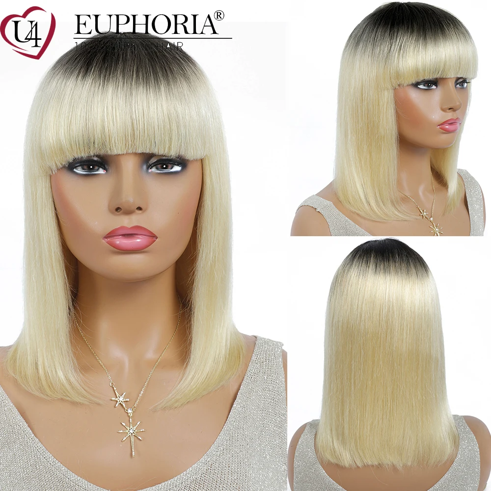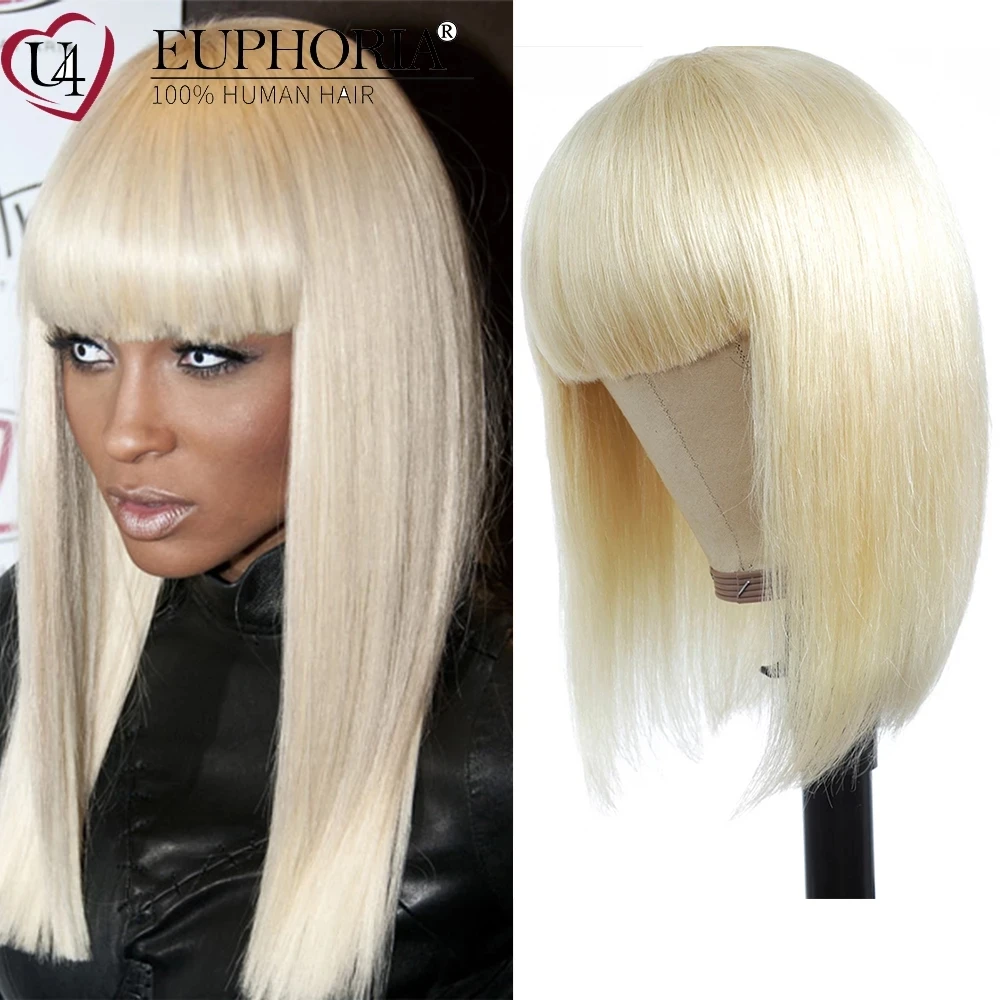 Светлые 613 прямые волосы, парики боб, бразильские человеческие волосы Реми, полный парик без шнурка с челкой, Омбре, платина 8-28 дюймов, Эйфория