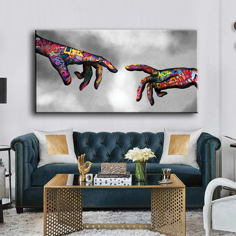 Граффити, абстрактная живопись на холсте на стене, красочные картины, изображение руки Бога, настенные художественные Плакаты для гостиной
