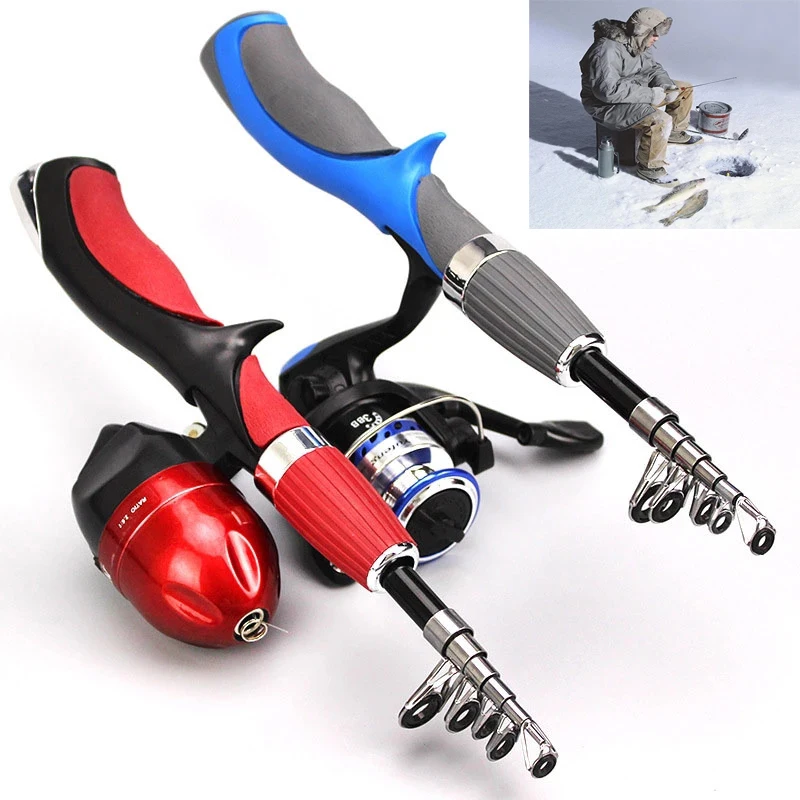 Удочка из углеродного волокна, сверхтвердая лодка, приманка для льда, зимняя Удочка с рыболовной катушкой, рыболовные снасти, набор, 1,2 м, 1,4 м, длина