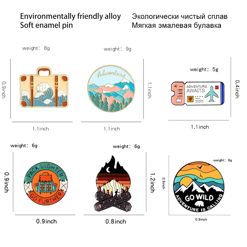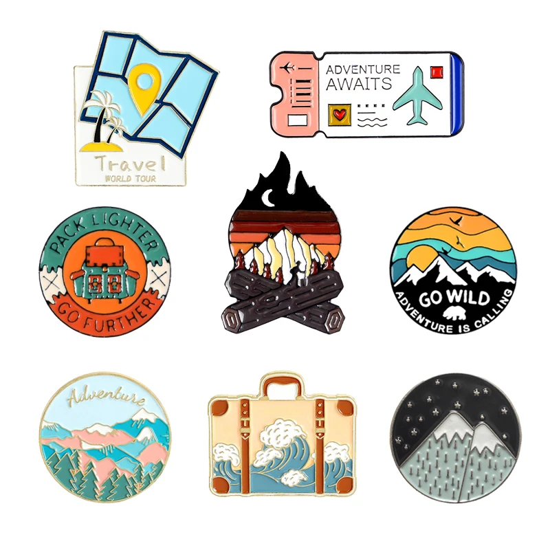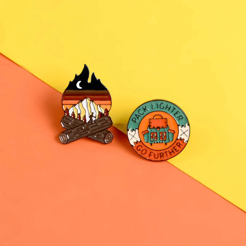 Эмалированная булавка для кемпинга с изображением костра в рюкзаке, брошь с изображением воздушного билета, пейзажа, лацкана, ювелирное украшение, подарок для любителей приключений