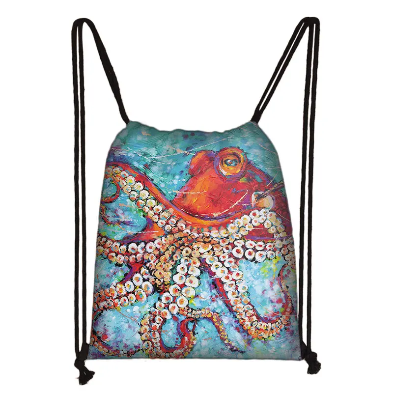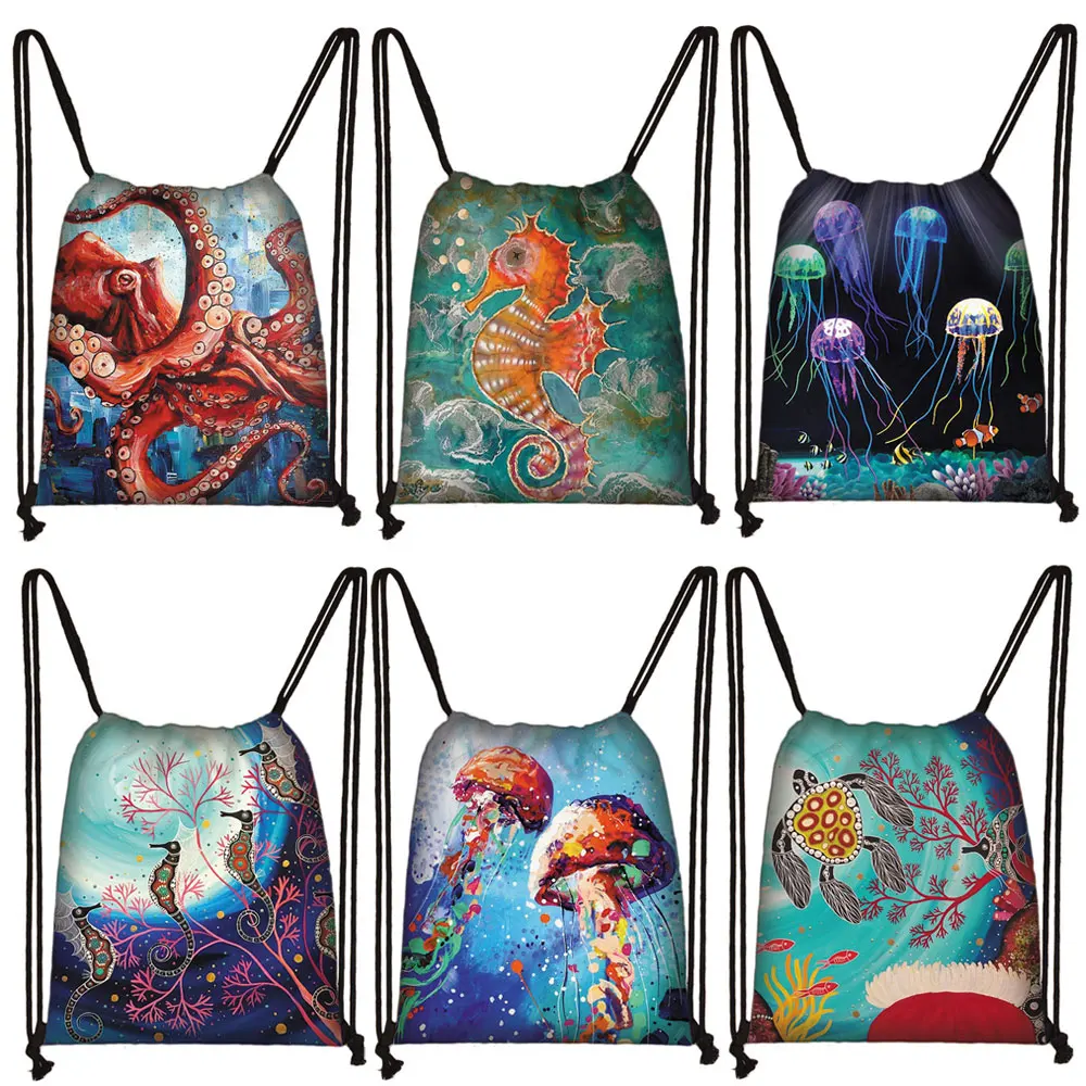 Рюкзак Seahorse с изображением Медузы осьминога для женщин и мужчин, сумки для хранения для путешествий, держатель для обуви для мальчиков и девочек, сумка на шнурке, сумка для книг, подарок
