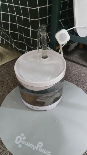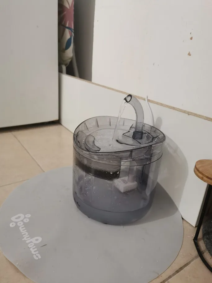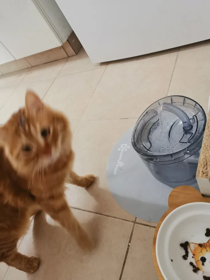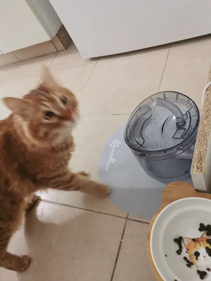 Фильтрует яркий фонтан с изображением кошки, купленный ранее (с датчиком). Так приятно и может порекомендовать все эти товары.