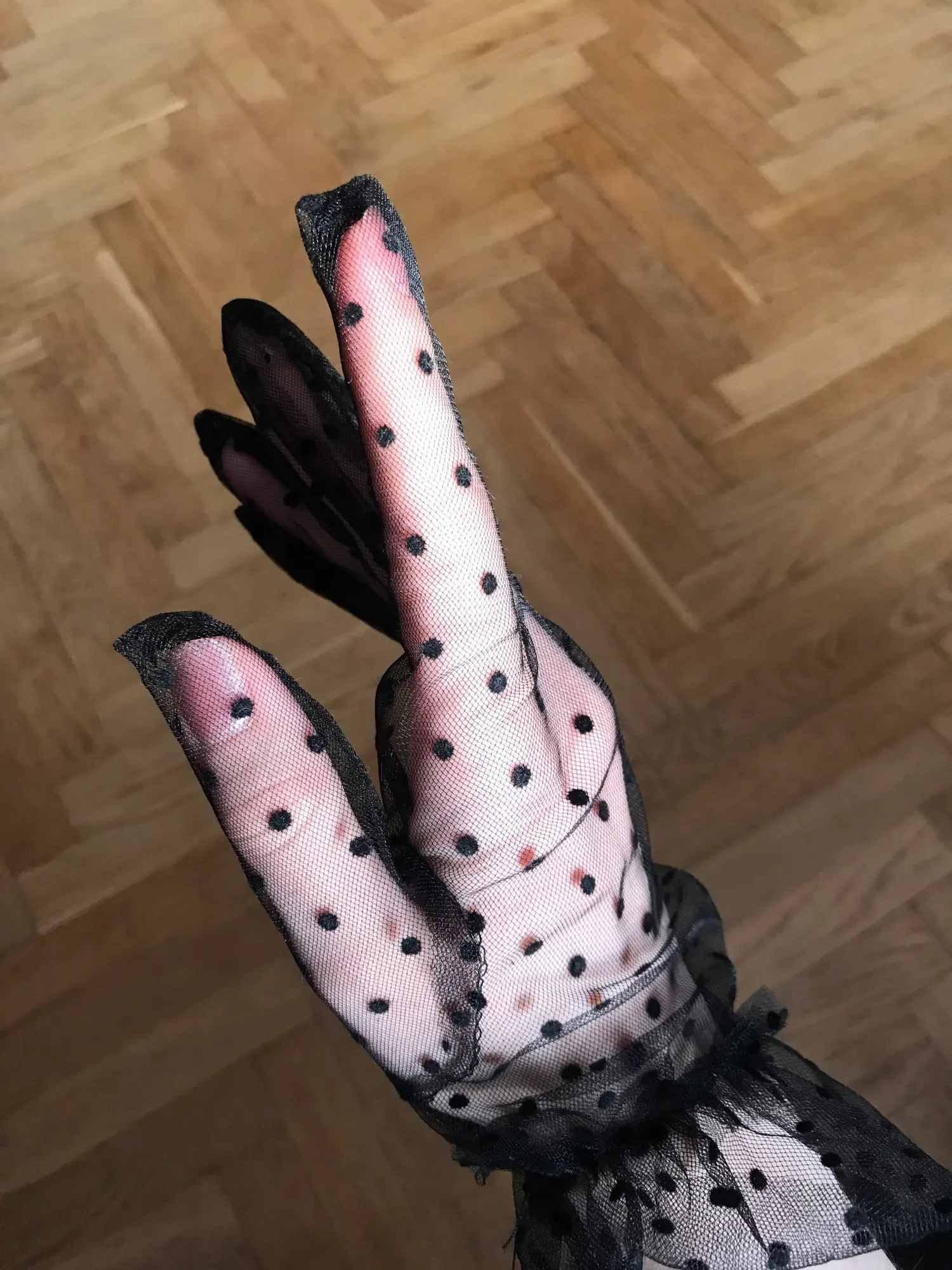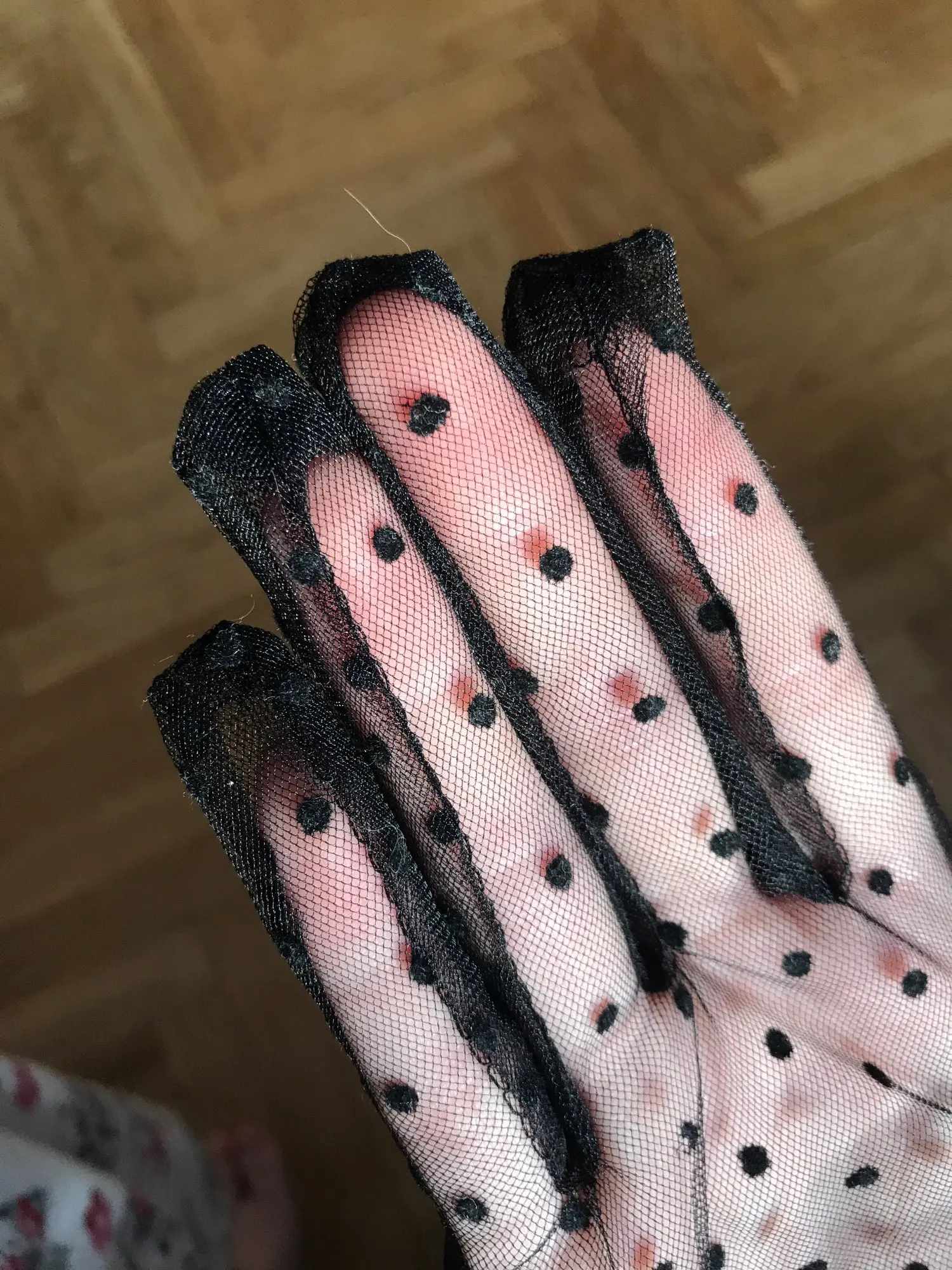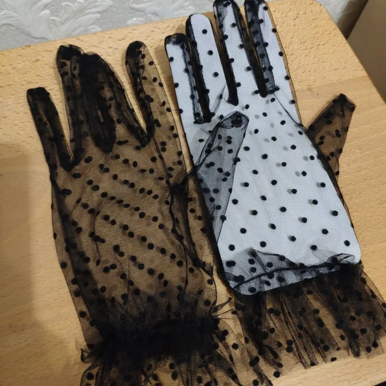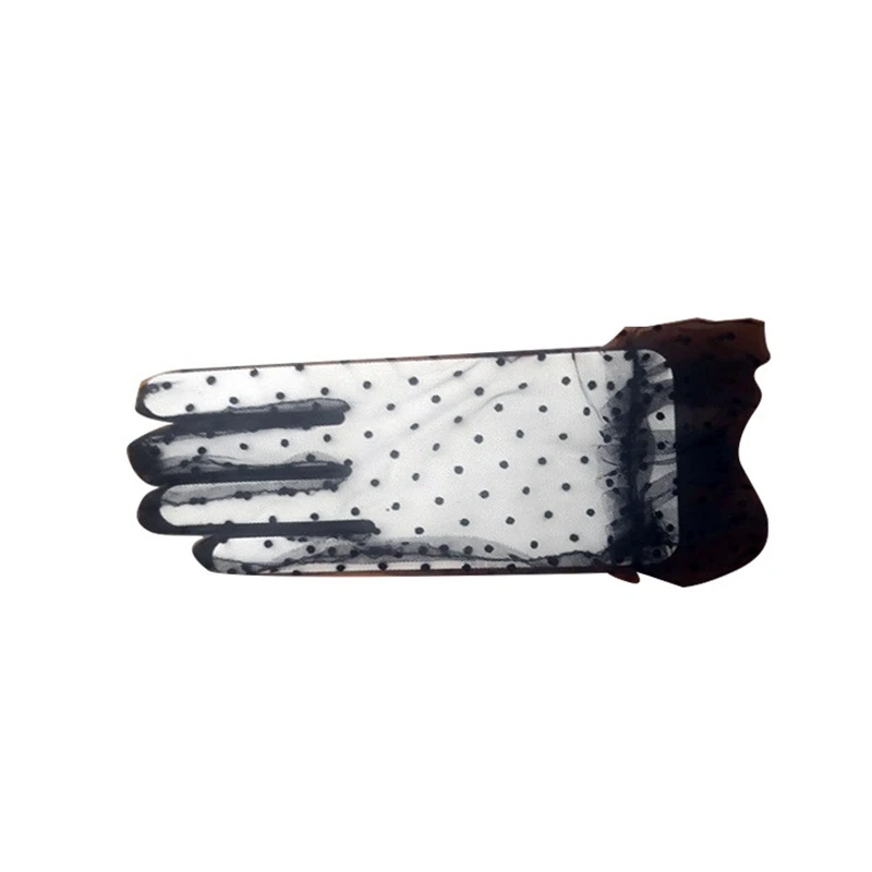 Перчатки женские прозрачные сетчатые, черные, белые, с принтом в горошек