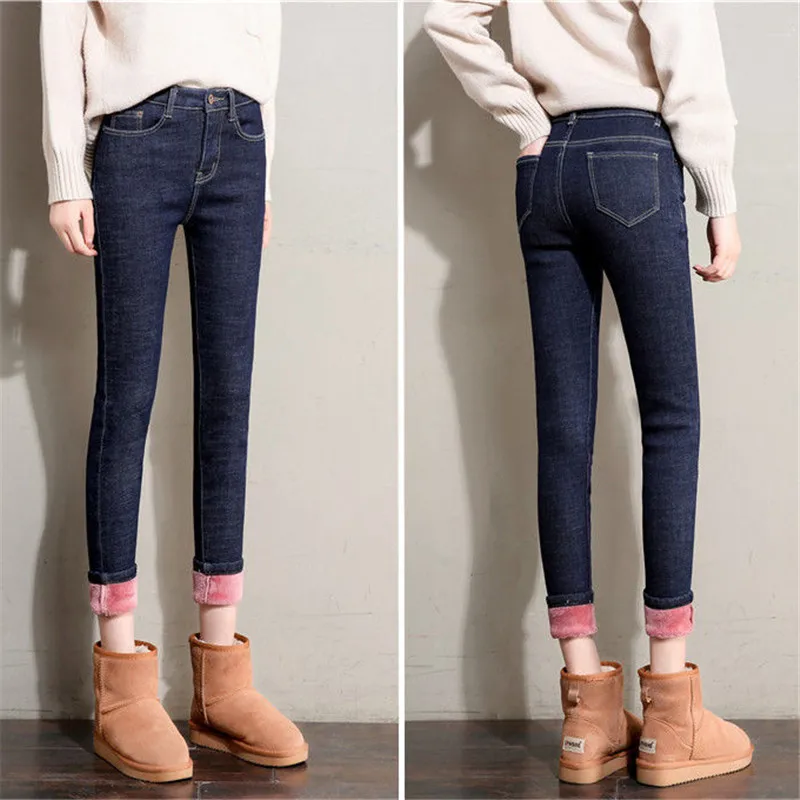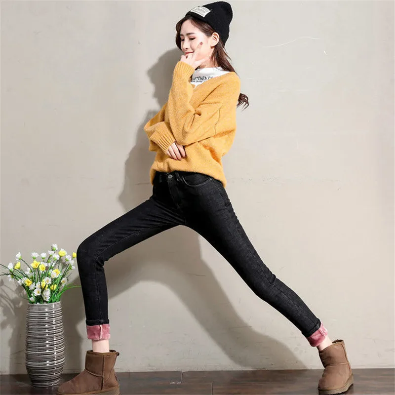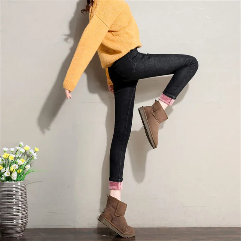 Зимние теплые джинсы для женщин, эластичные джинсы, женские брюки, ...