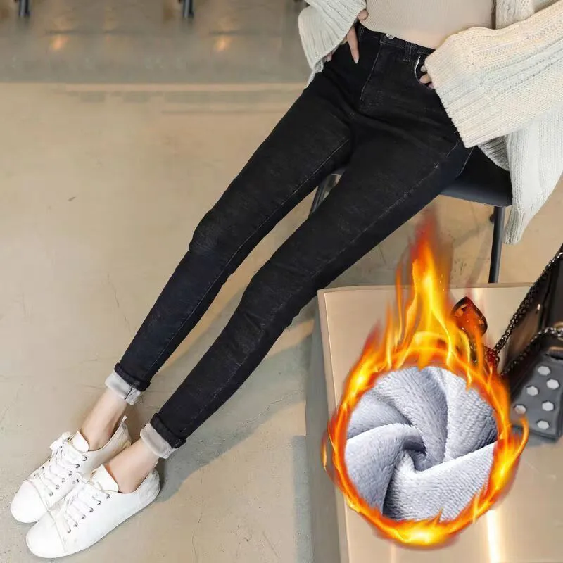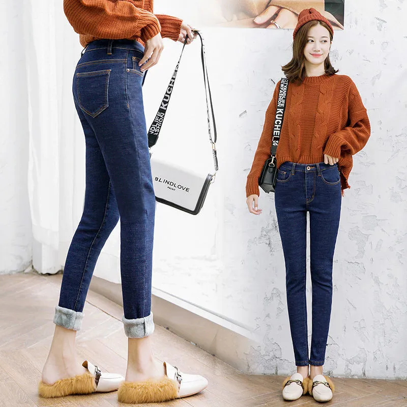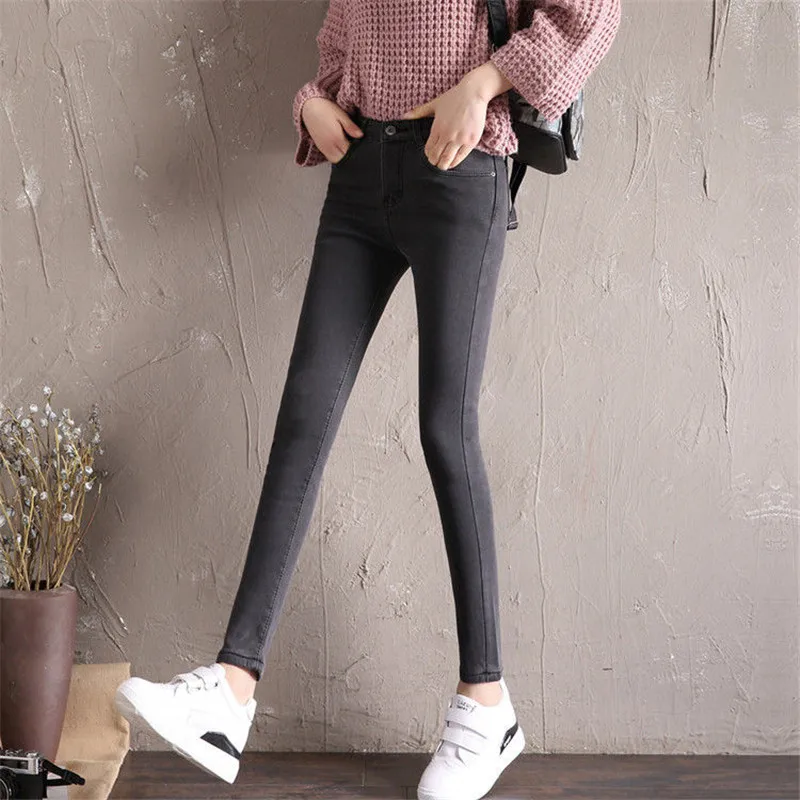 Женские утепленные джинсы, эластичные хлопковые брюки-карандаш с бархатной подкладкой, с высокой талией, в Корейском стиле, на зиму