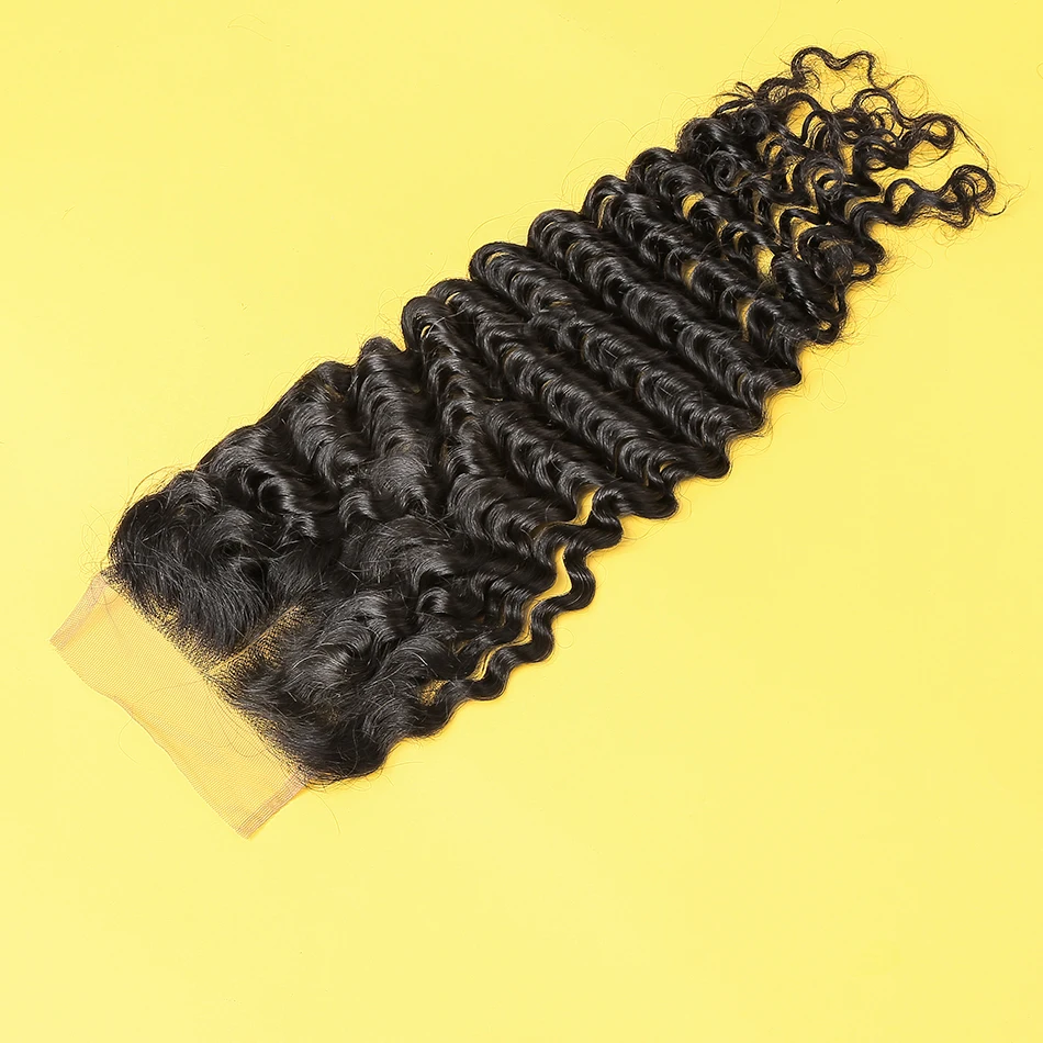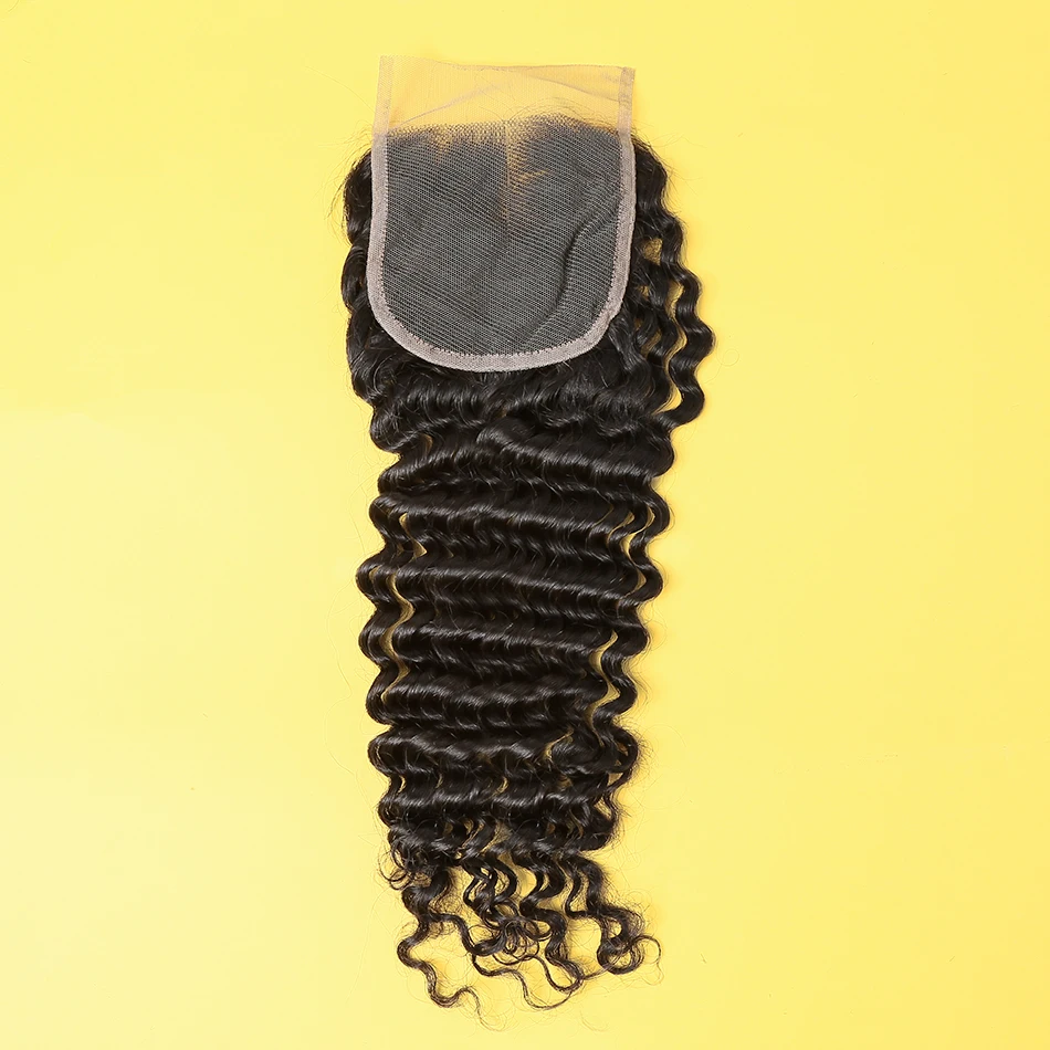4x4 Кудрявые Кружева Закрытие бразильские глубокая волна Закрытие 8-22 дюйма естественный цвет свободный средний коэффициент человеческие волосы для наращивания Remy волосы