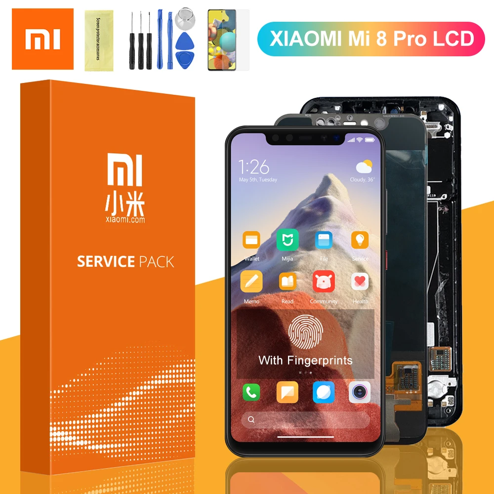 Дисплей для Xiaomi Mi 8 Pro, 6,21 дюйма, ЖК-дисплей, сенсорный экран, дигитайзер в сборе с рамкой, Поддержка сканера отпечатков пальцев