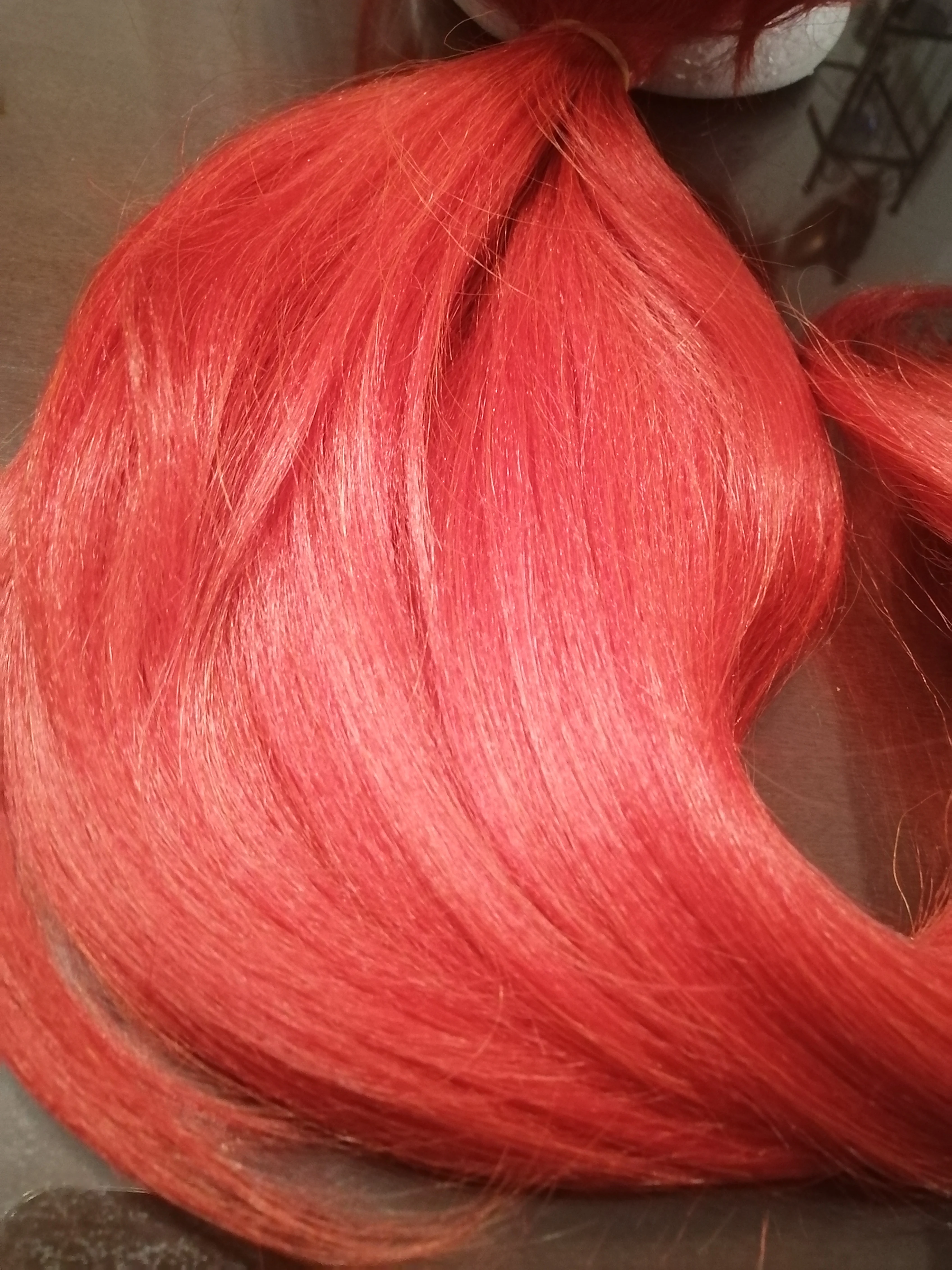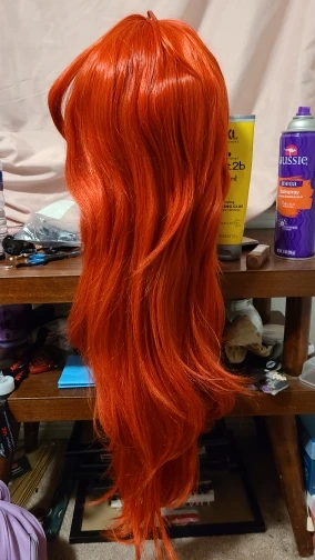 Я беспокоился, что получу низкое качество по низкой цене, но на самом деле очень мило. Освещение в моей комнате и моей камере делает его довольно оранжевым, но цвет соответствует ему в игре и webcomic. Это как хороший помидор, если это имеет чувство. На этих фотографиях абсолютно нет стиля, нет ни одного выреза, все, что я сделал, это вынул хвост (его резинку) и почистил заднюю часть и челку. Я невероятно рад стилю и носить это. Волос сзади достаточно для хорошего хвоста.