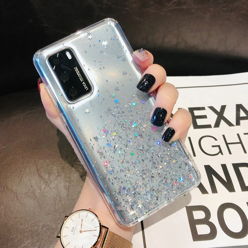 Силиконовый чехол с блестками и звездами для HUAWEI P40 Lite E P20 ...