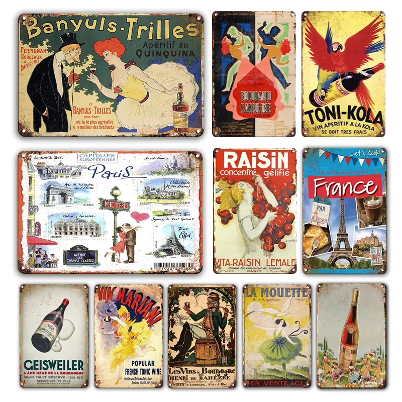 Французский тоник, винное вино, винтажная картина, оловянный постер Тони-кола, знаки, художественные настенные наклейки, Декор, табличка, мышка