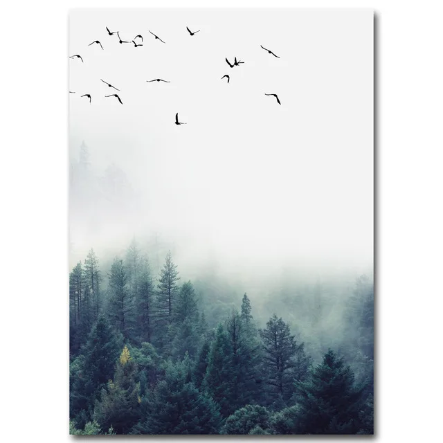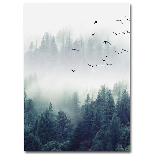 Современная Декоративная Настенная картина с изображением леса, природного ландшафта, белого леса, птиц, дымчатого моря, Бескаркасный холст, Hd печатный плакат