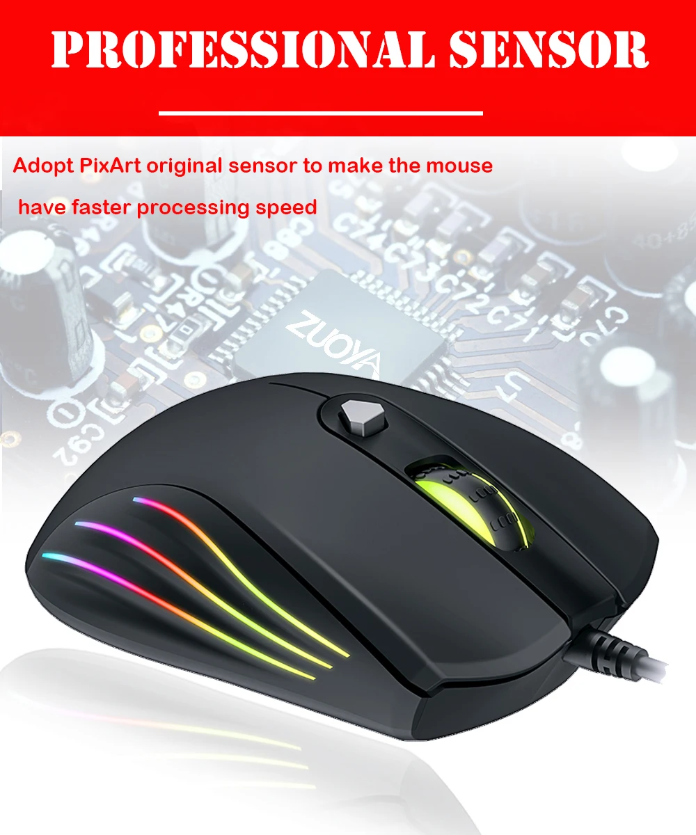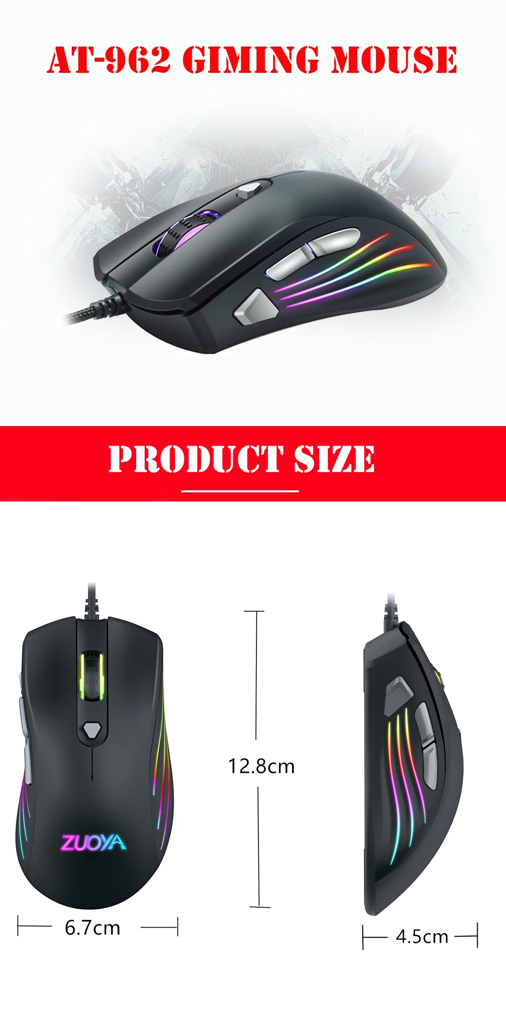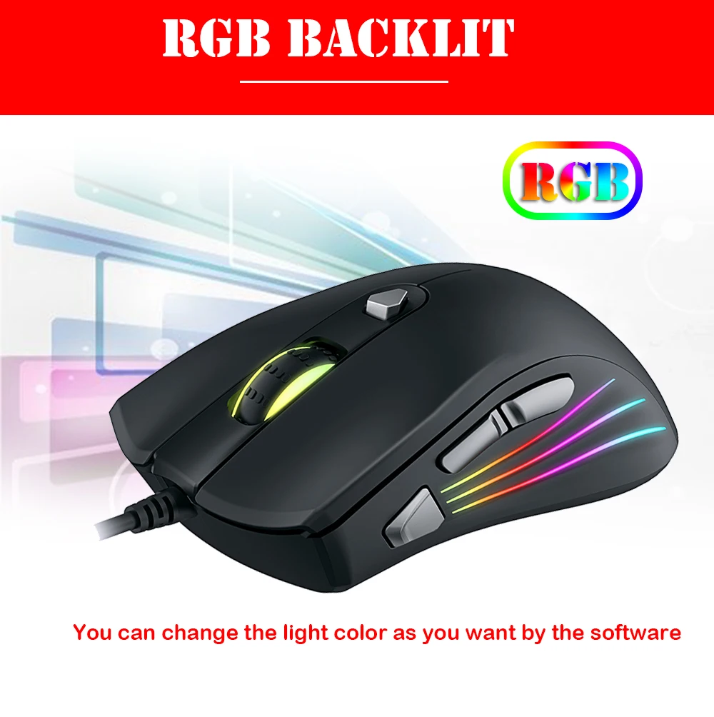 Мышь игровая Проводная с RGB подсветкой, 7 кнопок, AT962