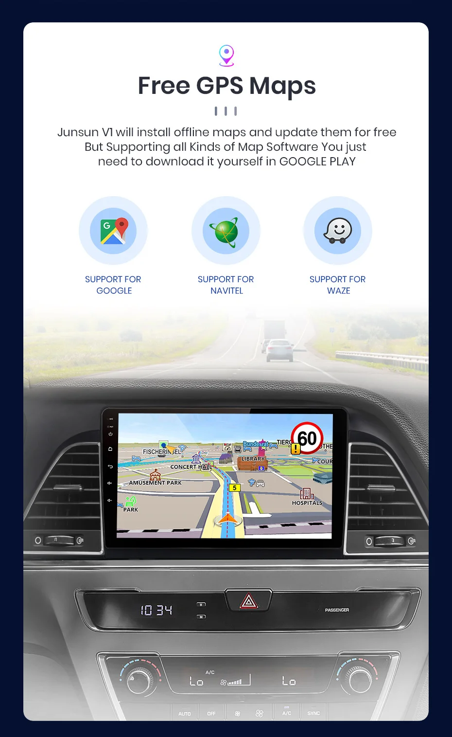 GPS Navigation mapBuilt-in offline map, free update (support Igo/Waze/Google map/Navite)