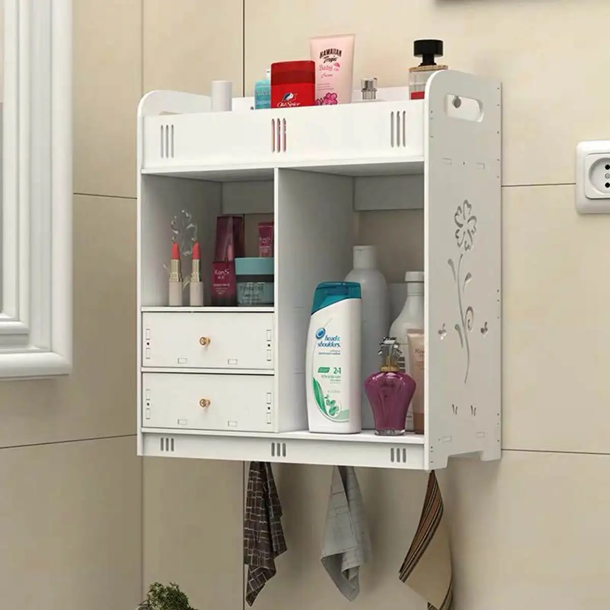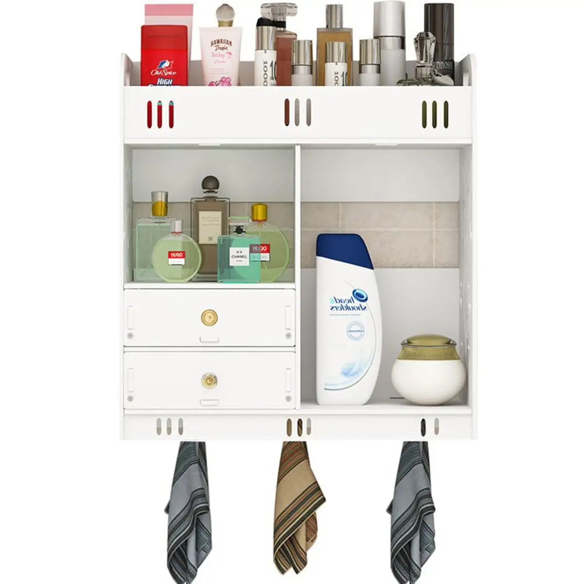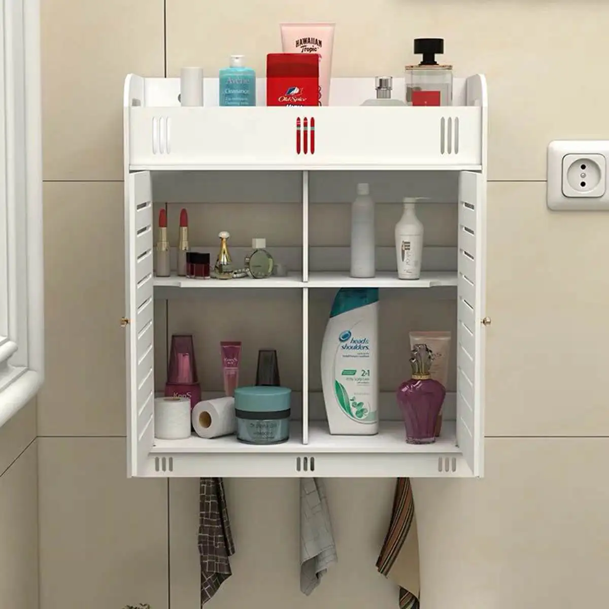 Особенности:◆ Изготовлен из высококачественного материала, влагостойкий, прочный.◆ Идеальный шкаф для хранения косметики, шампуня и других средств для чистки туалета. Также удобно для подвешивания полотенец.◆ Компактный, обеспечивает аккуратный и чистый вид большинства ванных комнат или спальни.◆ С приклеивающимися крючками. Без перфорации. Легко установить.