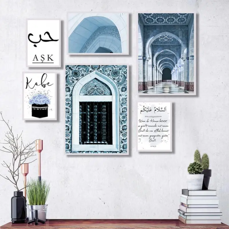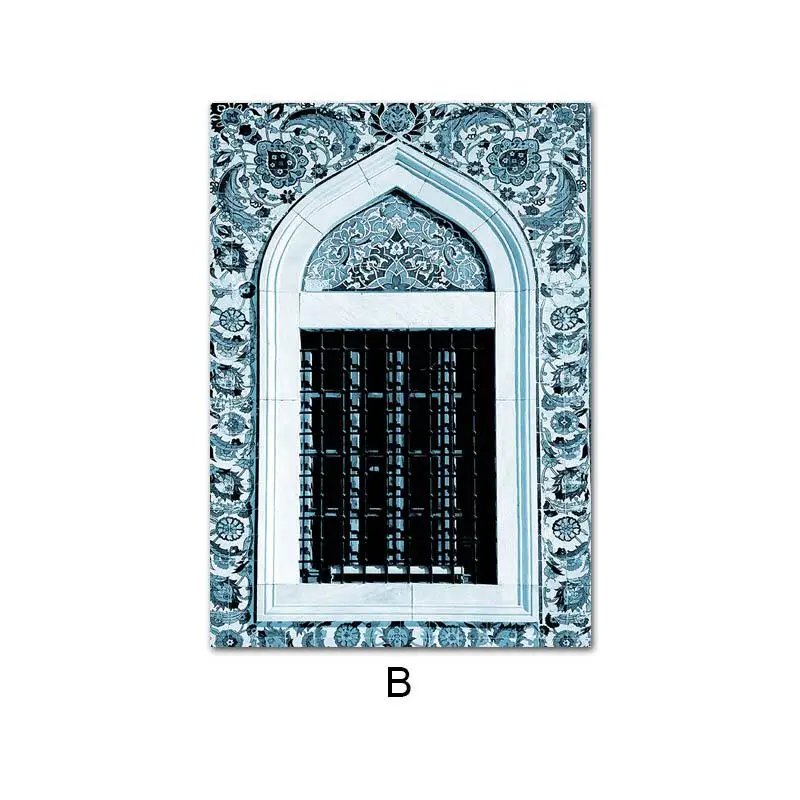 Исламская классическая синяя АРКА, здание мечети, марокканская настенная живопись, холст, Hd печать, художник, украшение для дома, плакат