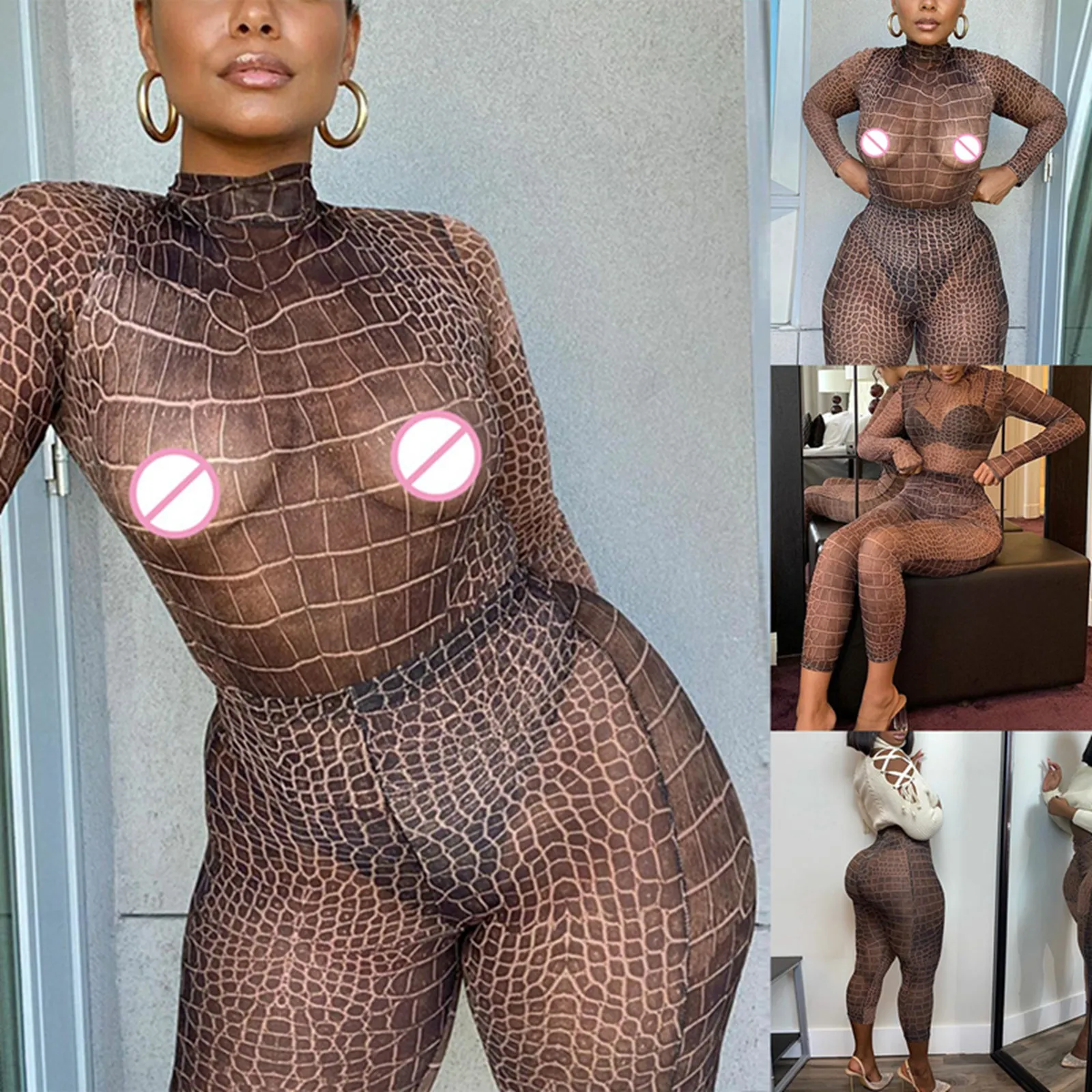 Комбинезон женский с леопардовым принтом и длинным рукавом, осень 2021
