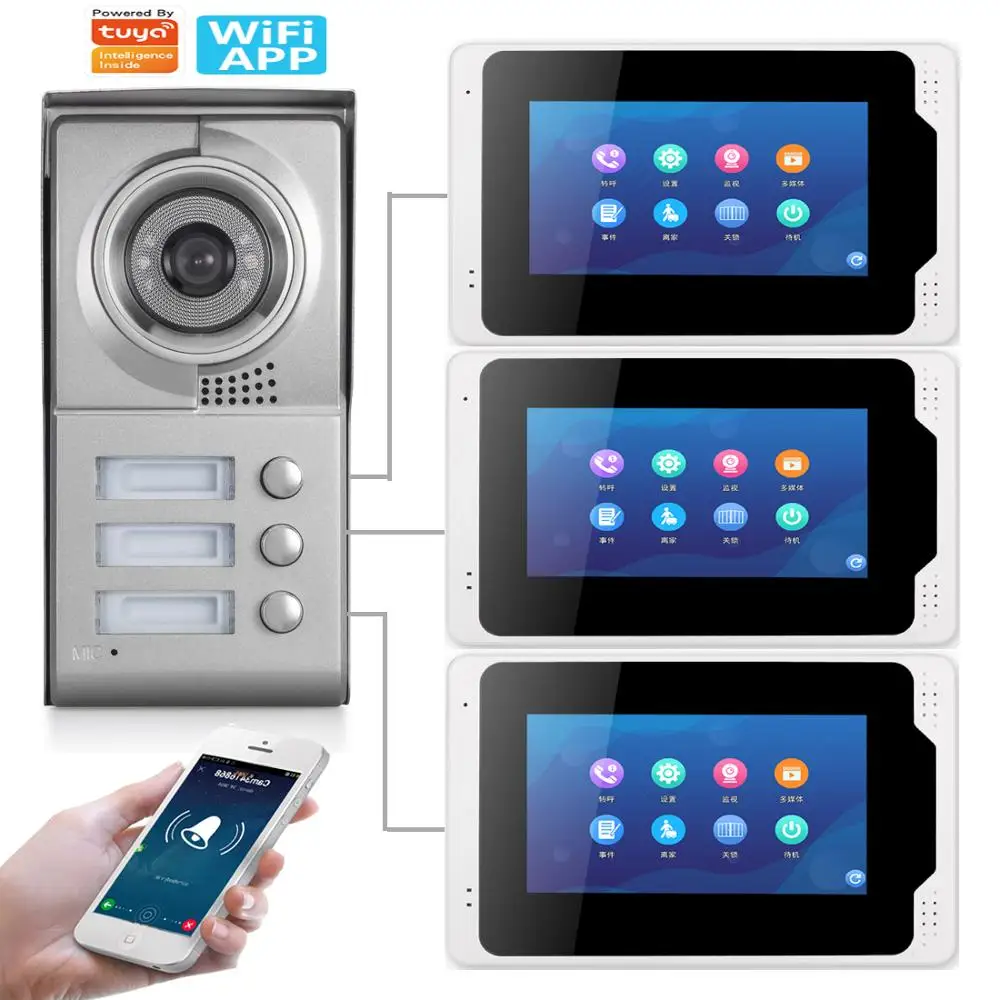 Видеодомофон Tuya с управлением через приложение, монитор 7 дюймов 1080P, Wi-Fi, беспроводной видеодомофон, дверной звонок, комплект домофона для квартиры 3 шт.