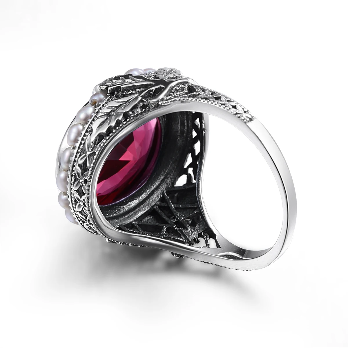 Женское винтажное серебряное кольцо Szjinao, серебро 925 пробы, готический кольцо с камнями с натуральным пресноводным рубином и жемчугом