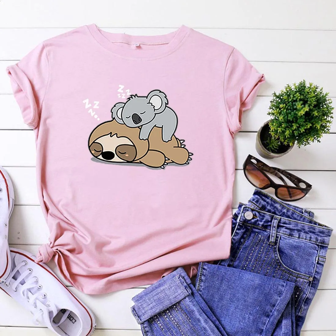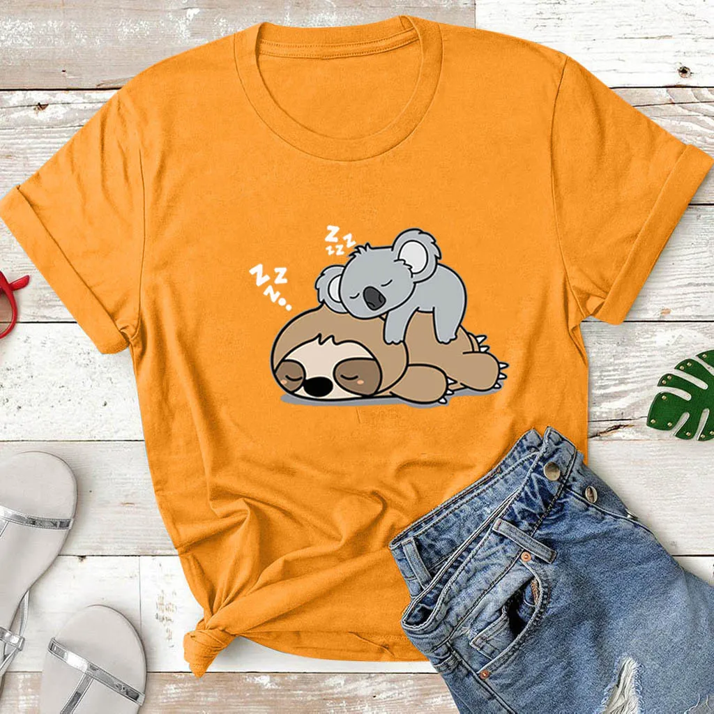 Женская хлопковая Футболка с принтом коалы, черная свободная футболка с коротким рукавом, женская футболка в стиле Харадзюку