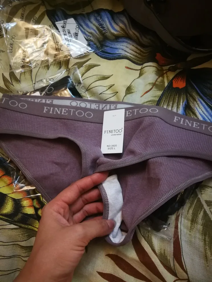 Хорошие качественные хлопковое трусики. На объём бёдер 102 заказала размер L, сидят прям плотно, но я так люблю, потому что потом всё равно растянутся, посадка низкая. Короче, классные.
