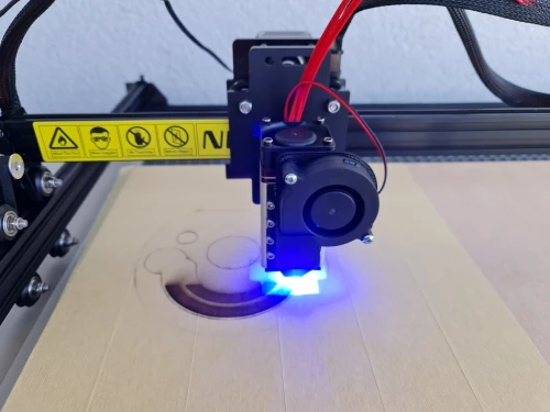 Отличный лазер! Обновил прошивку по инструкции, lightbern автоматически определил модель! Пока только гравировал на тестовом картоне. Скорость 1000mm/min мощность 10%. Как установлю обдув и вытяжку дополню отзыв о резке толстой фанеры.