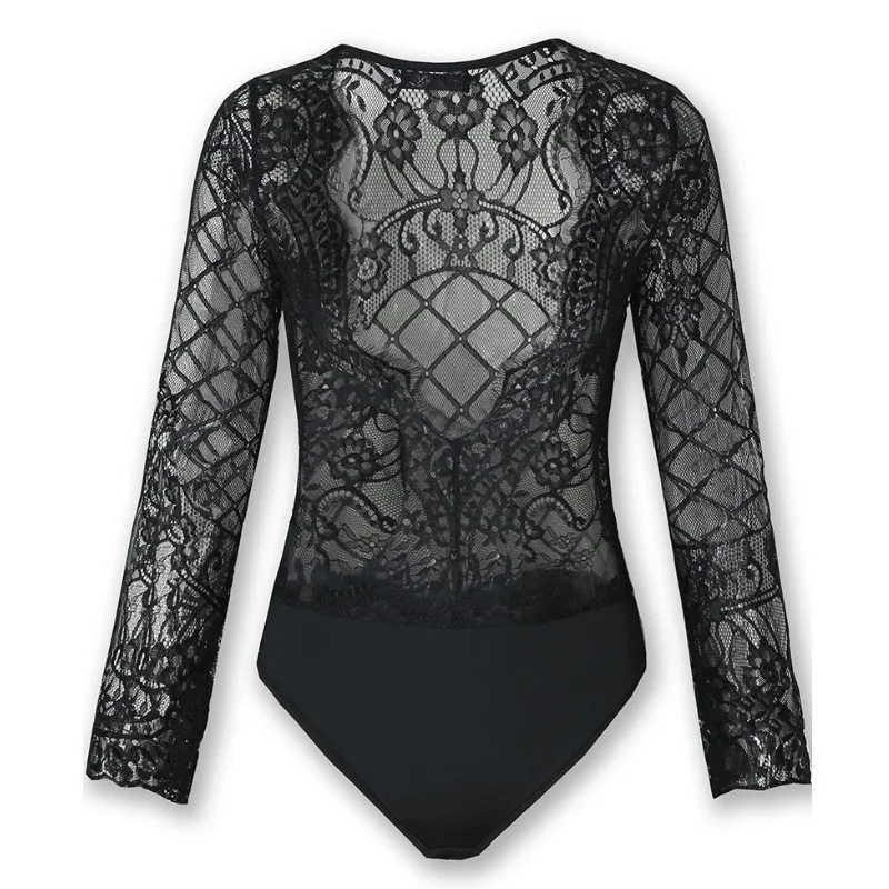 Женский черный прозрачный сексуальный кружевной комбинезон, облегаю...