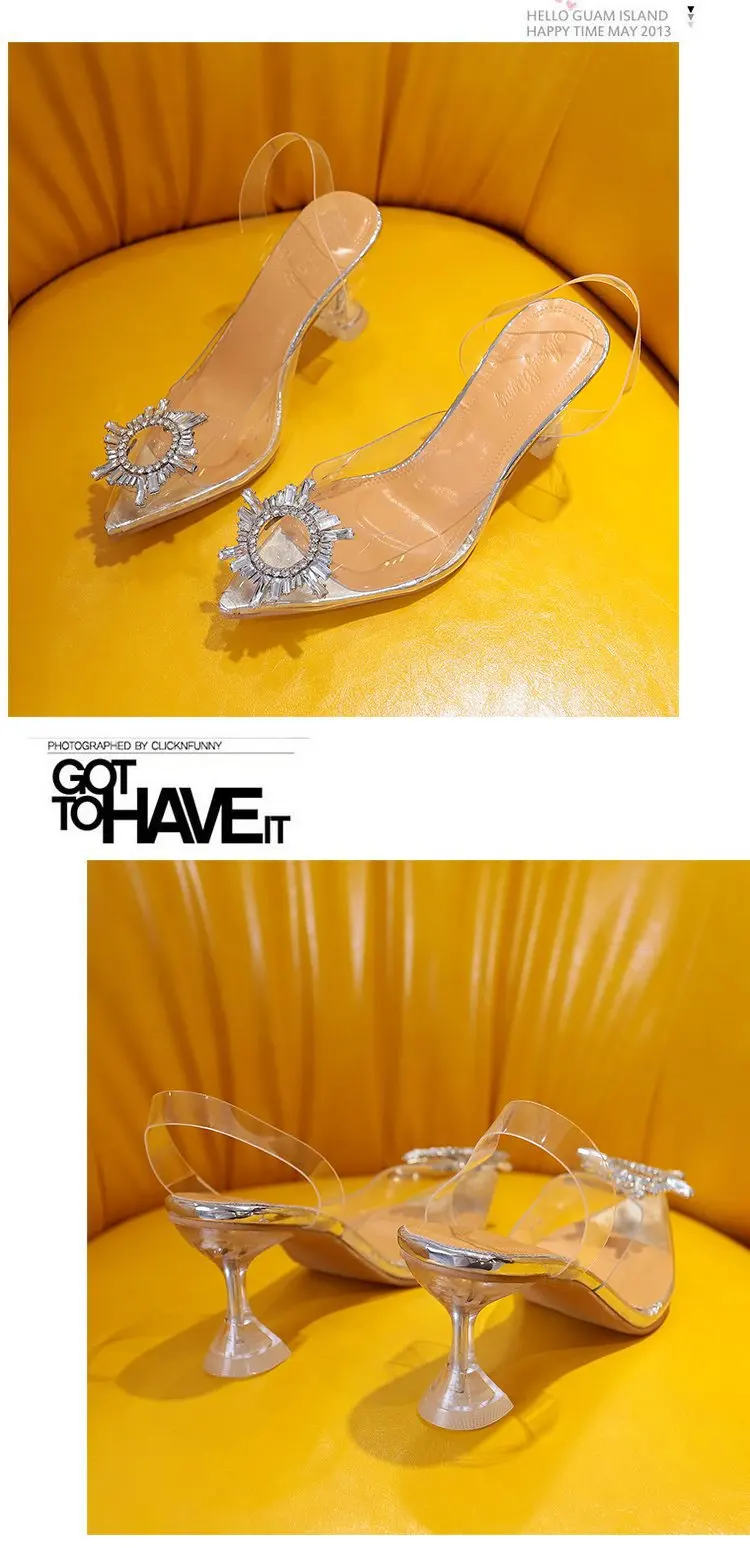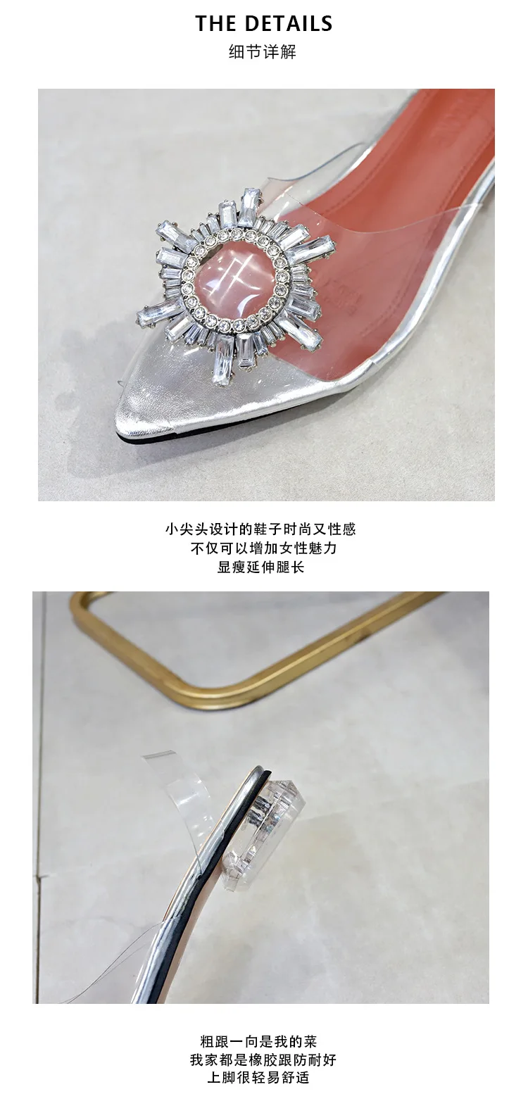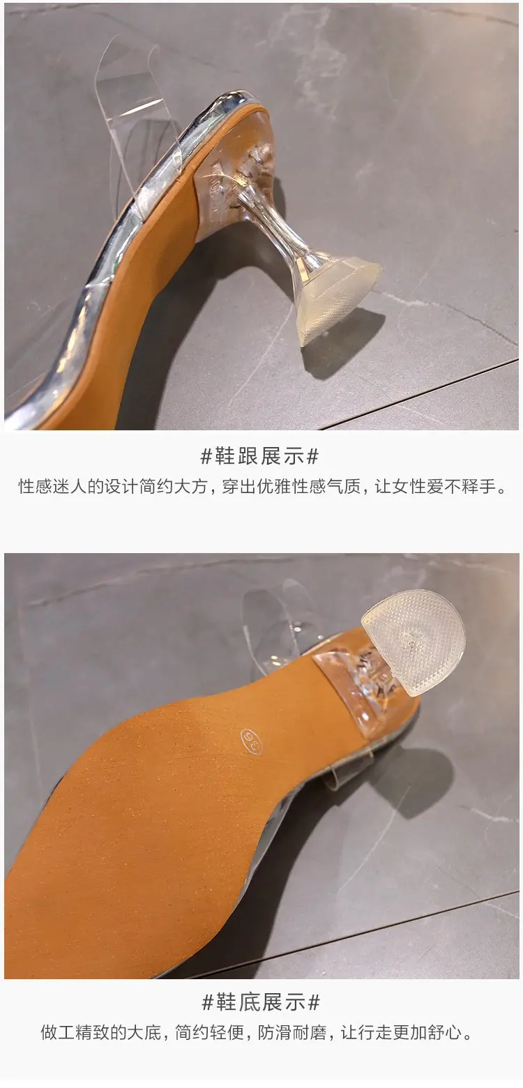 Женские босоножки 2020 г., пикантные прозрачные туфли на высоком каблуке, с острым носком, без застежки, для свадьбы, вечеринки, брендовые модные туфли для женщин на тонком каблуке