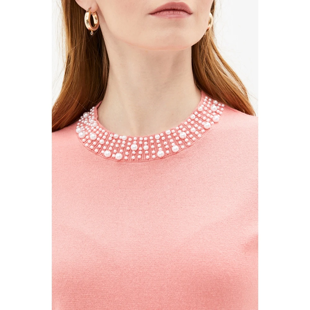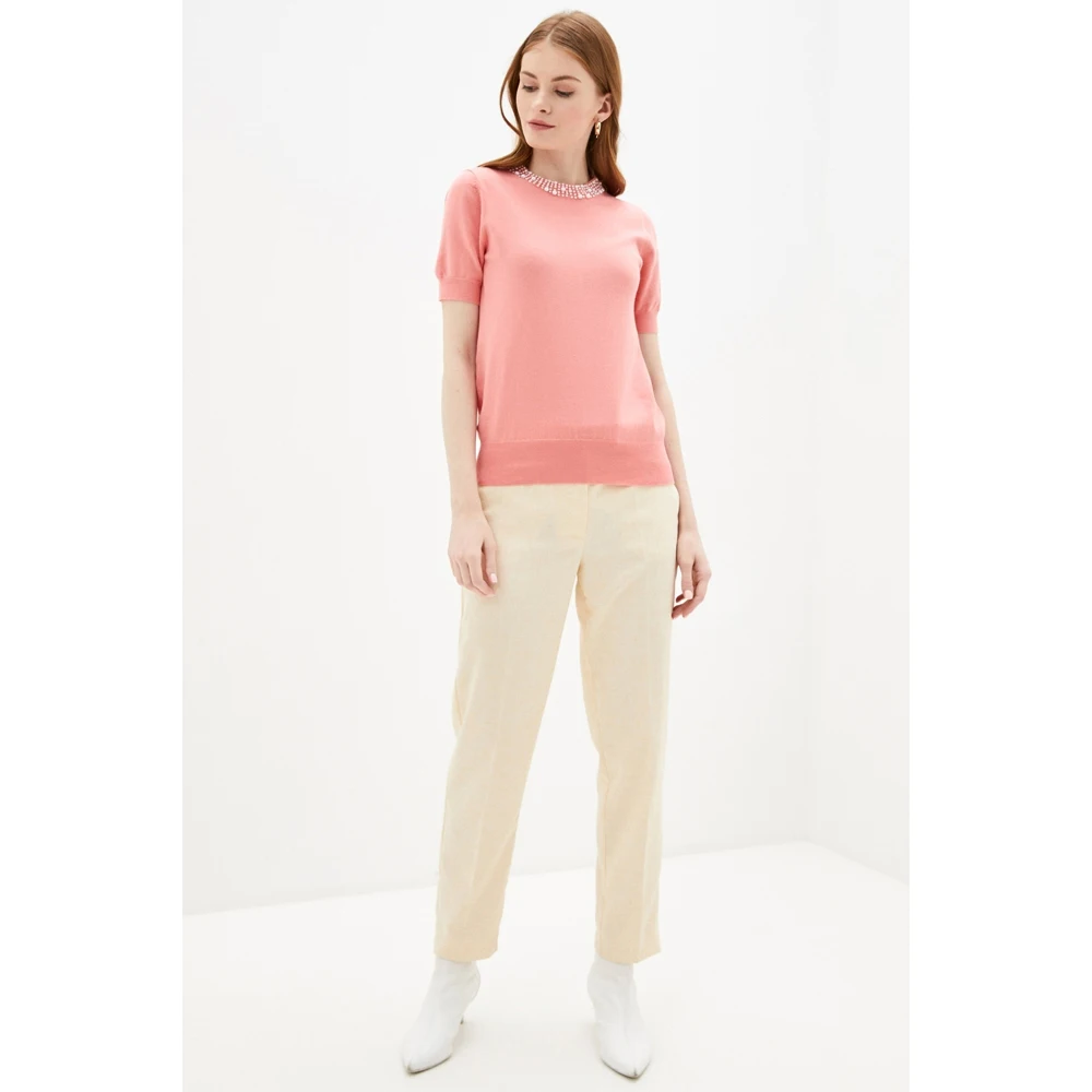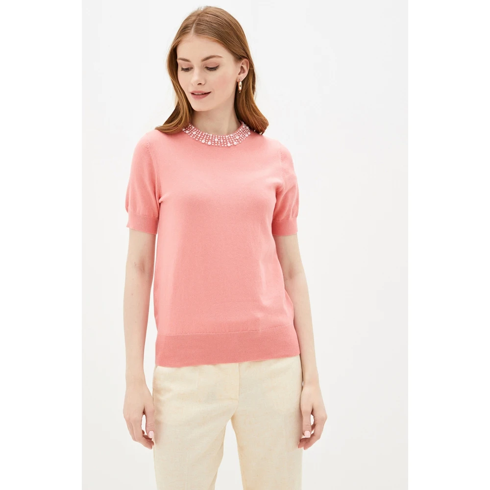 Производитель: Россия. Коллекция: ВЕСНА-ЛЕТО 2020. ~ Элегантный джемпер с коротким рукавом - воплощение респектабельности и сдержанного шика. Светлые оттенки, минималистичный дизайн всегда выступают маркерами безупречного вкуса. Эта модель особенно хороша в сочетании с классическими брюками, юбками и даже шортами. натуральный хлопок в составе - дышащий и гипоаллергенный прочный, устойчивый к износу и растяжению трикотаж приталенный крой с короткими рукавами округлый вырез горловины посадка SLIM FIT эластичная окантовка воротника, низа и манжет пришивные жемчужные бусины на воротнике застёжка на два крючка .