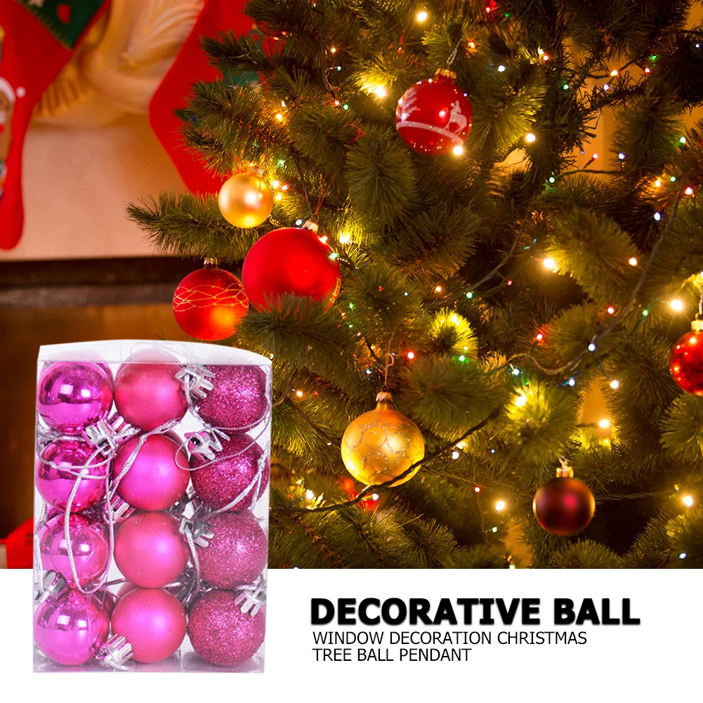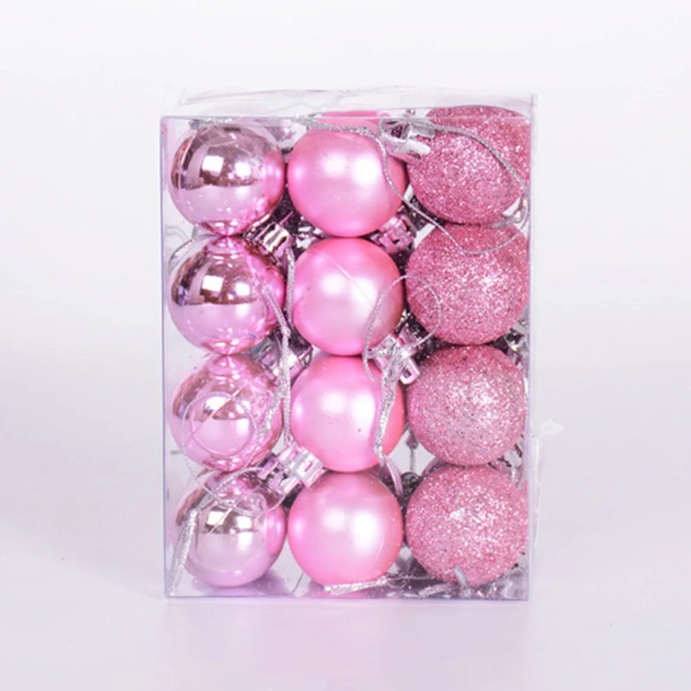24 шт.компл. Блестящие Елочные Шары, разноцветные елочные шары, рож...