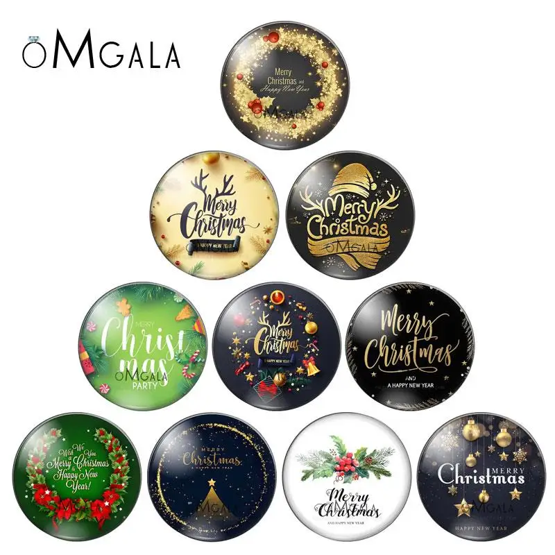 Рождественский фразовый новый год 10 шт. 8 мм10 мм 1 2 мм18 мм20 мм25 мм Круглый Фото стеклянный кабошон демонстрационная фурнитура с плоской задней стороной