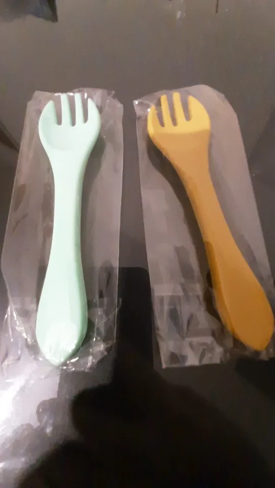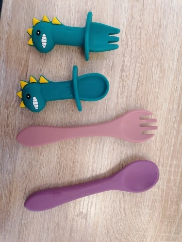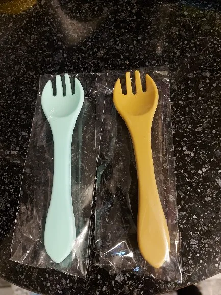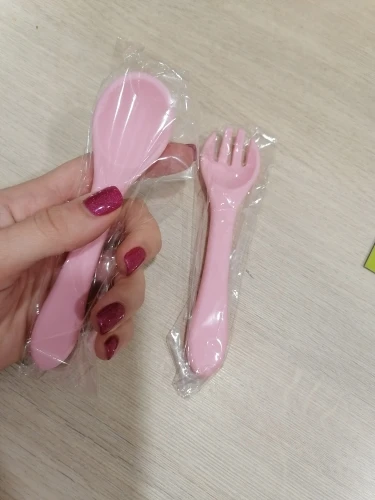 Ложки-вилки соответствуют описанию, но зачем я их взяла - не понимаю... особенно вилку. Только если ребёнка приучать к самому названию, тк выглядит она просто ложкой с прорезями, ничего не наколоть на неё. Ложка тоже большевата... для меня оказались бесполезными покупками