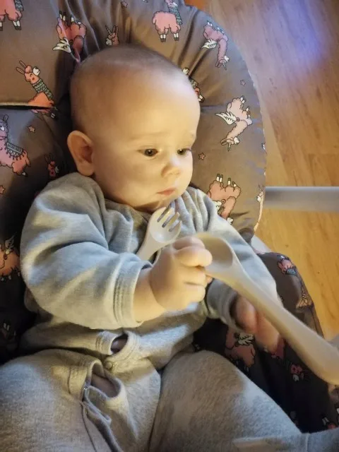 вилка хорошо, как и ложка. только купить купила, но хз, что ей будет есть ребёнок))