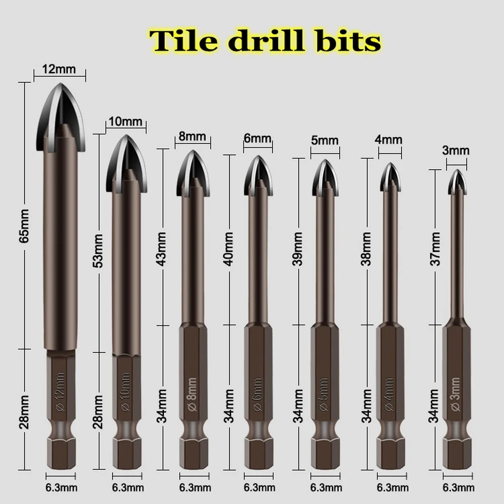 Крестовые шестигранные сверла для плитки, стекла, керамики, бетона, сплав, размер треугольное сверло, 3456 мм, сверла, стеклянные сверла