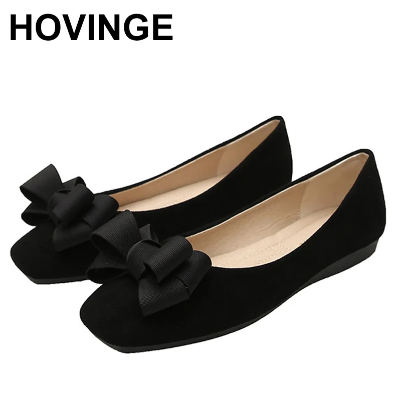 HOVINGEМодные женские балетки на плоской подошве с квадратным носком; Кожаные балетки для вечеринок; Размера плюс 33 - 43