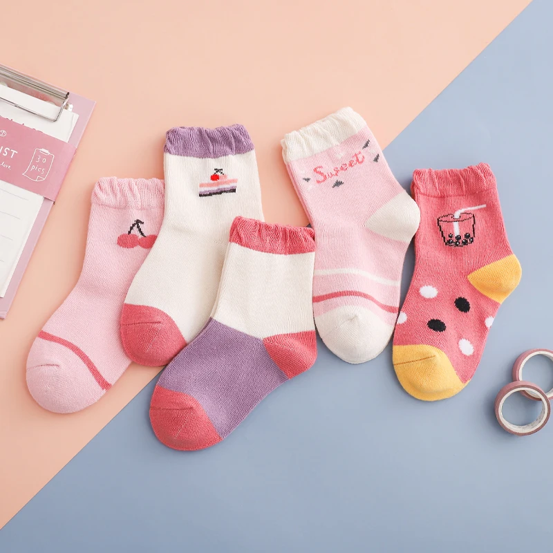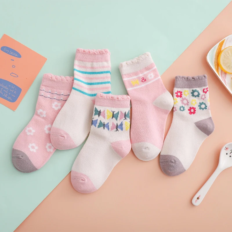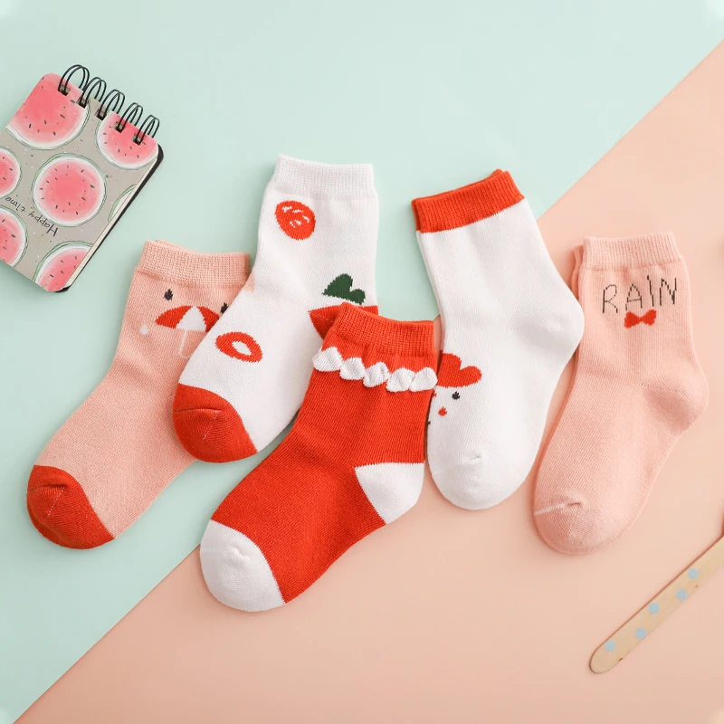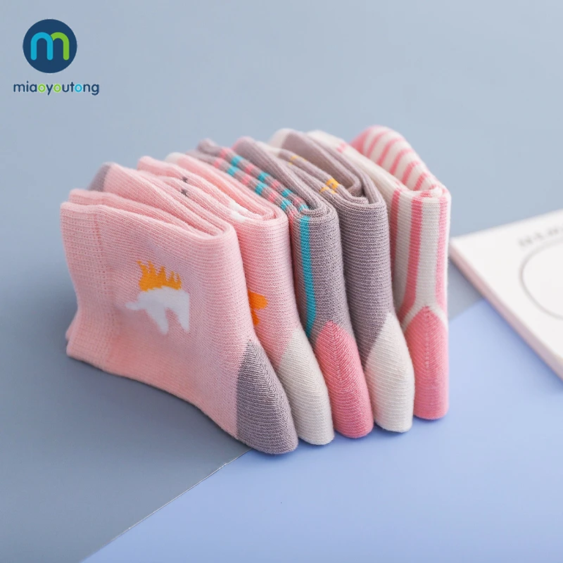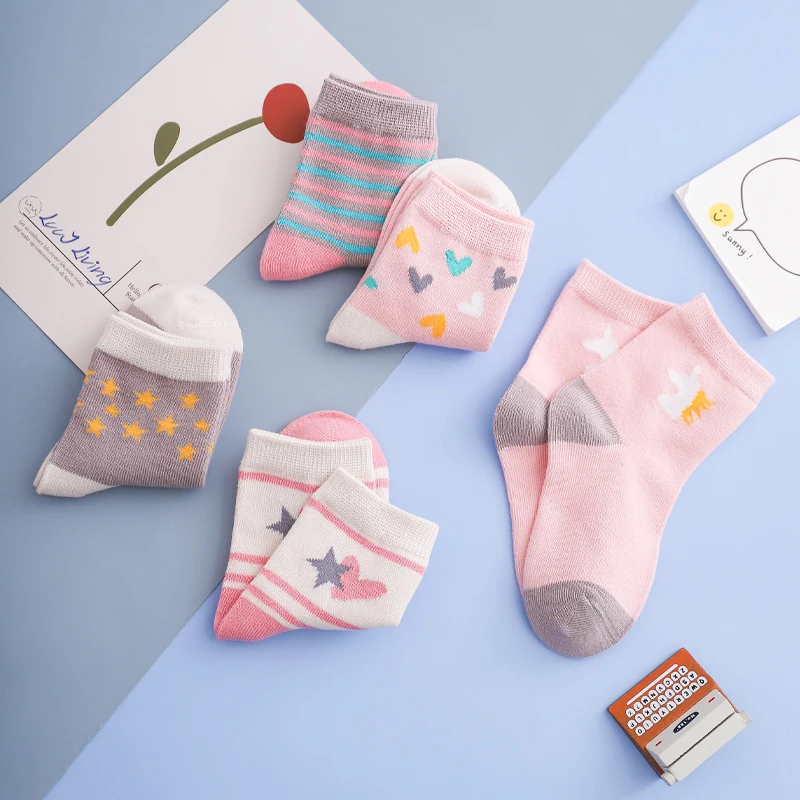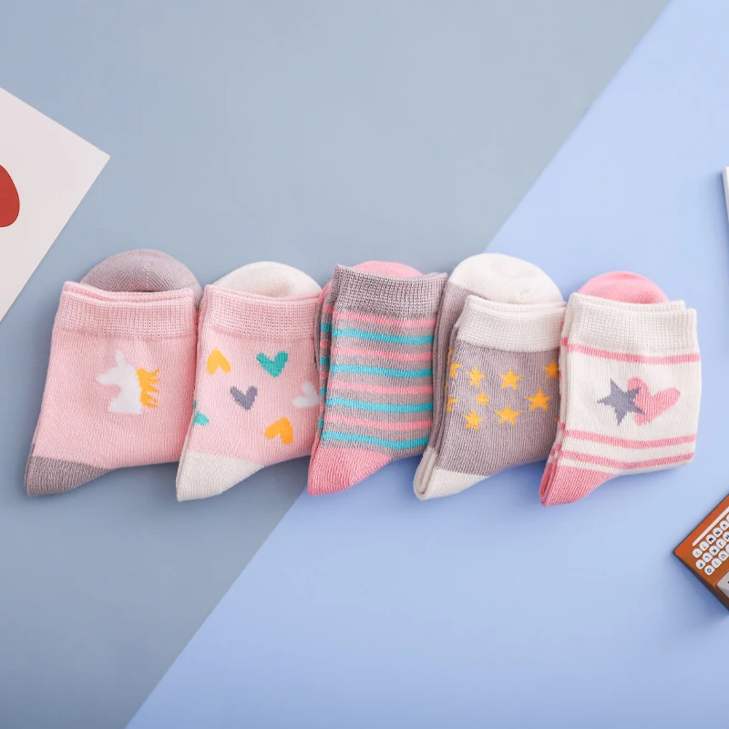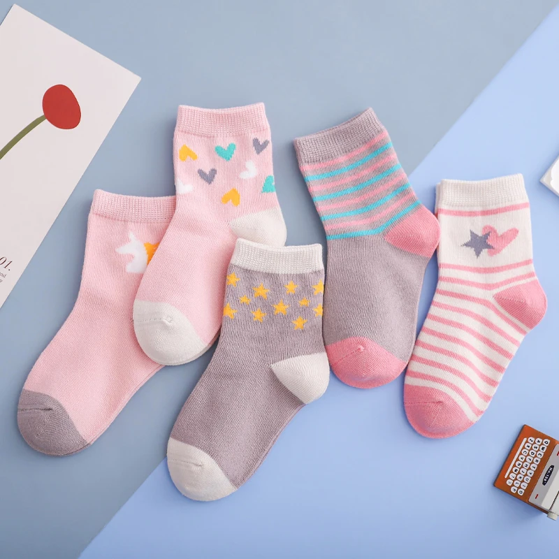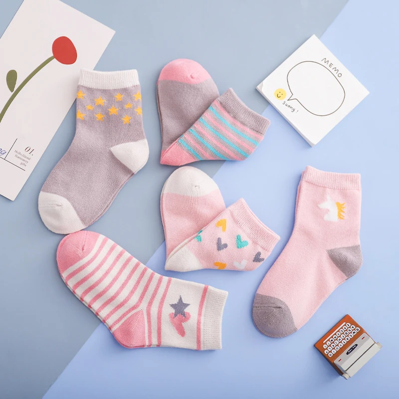 Носки детские, хлопковые, вязаные, теплые, с единорогом, звездой, для новогодних девочек, 5 парЛот