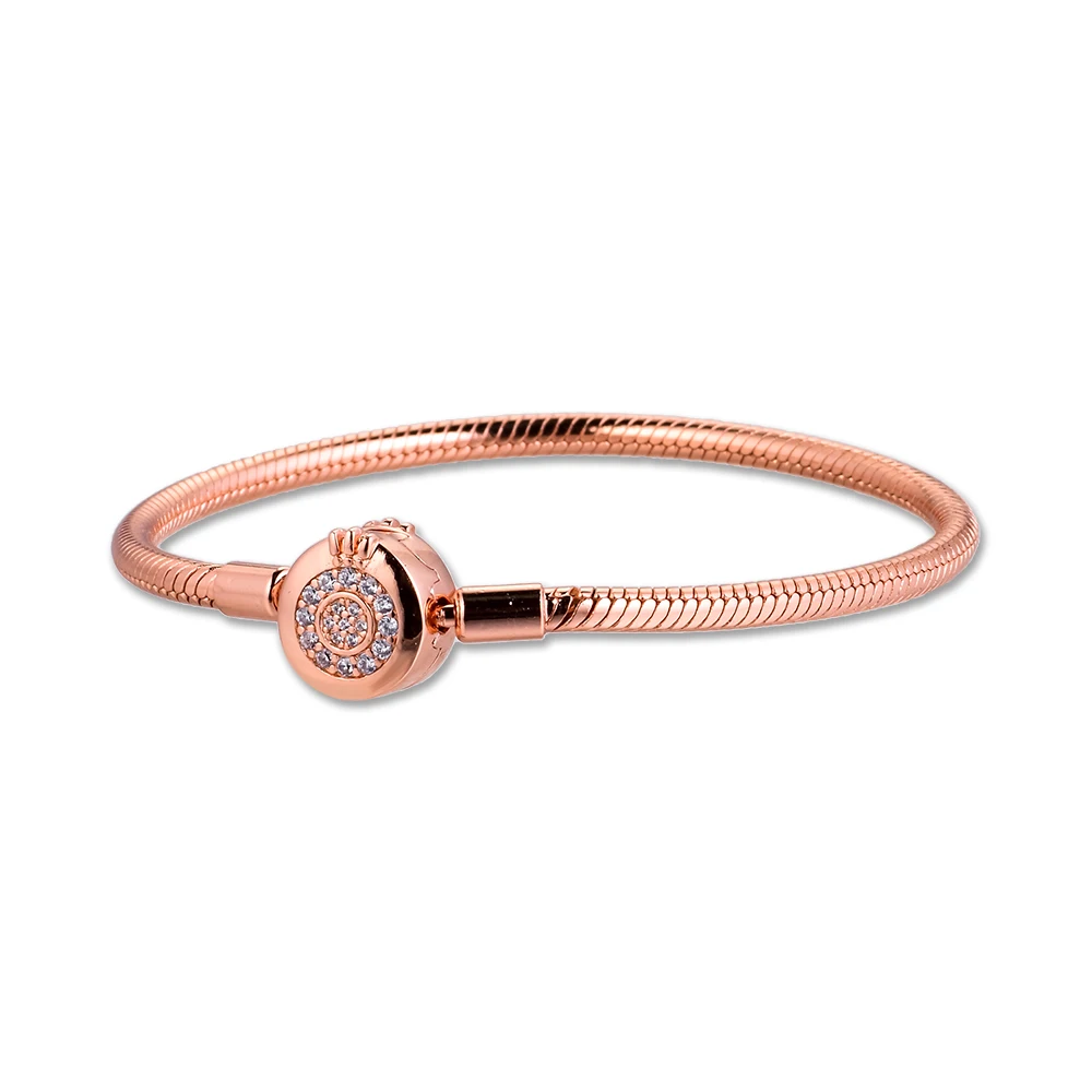 Браслеты из серебра 925 пробы с фирменными моментами, сверкающие браслеты с короной и круглым покрытием из розового золота, серебряные ювелирные изделия 925 пробы