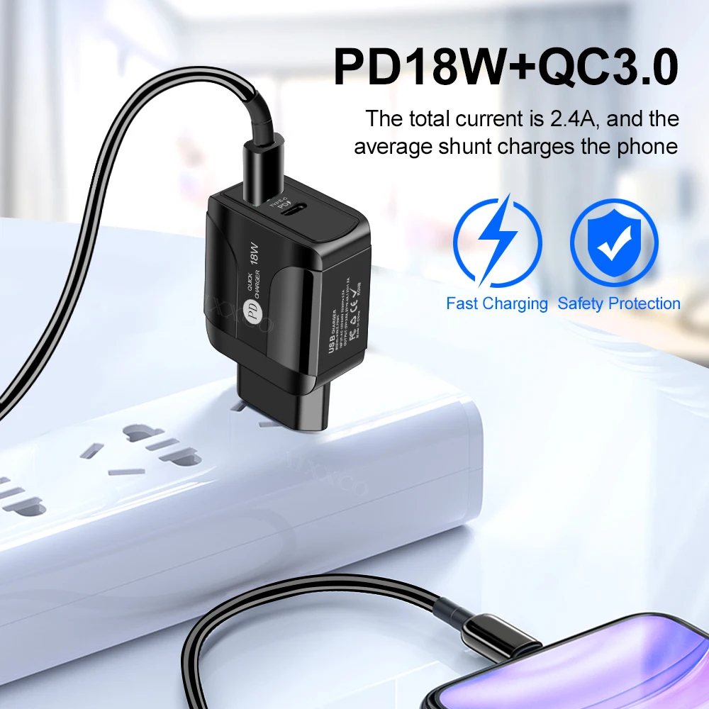 Зарядное устройство usb-c 3,0, 18 Вт, быстрая зарядка мобильный тел...