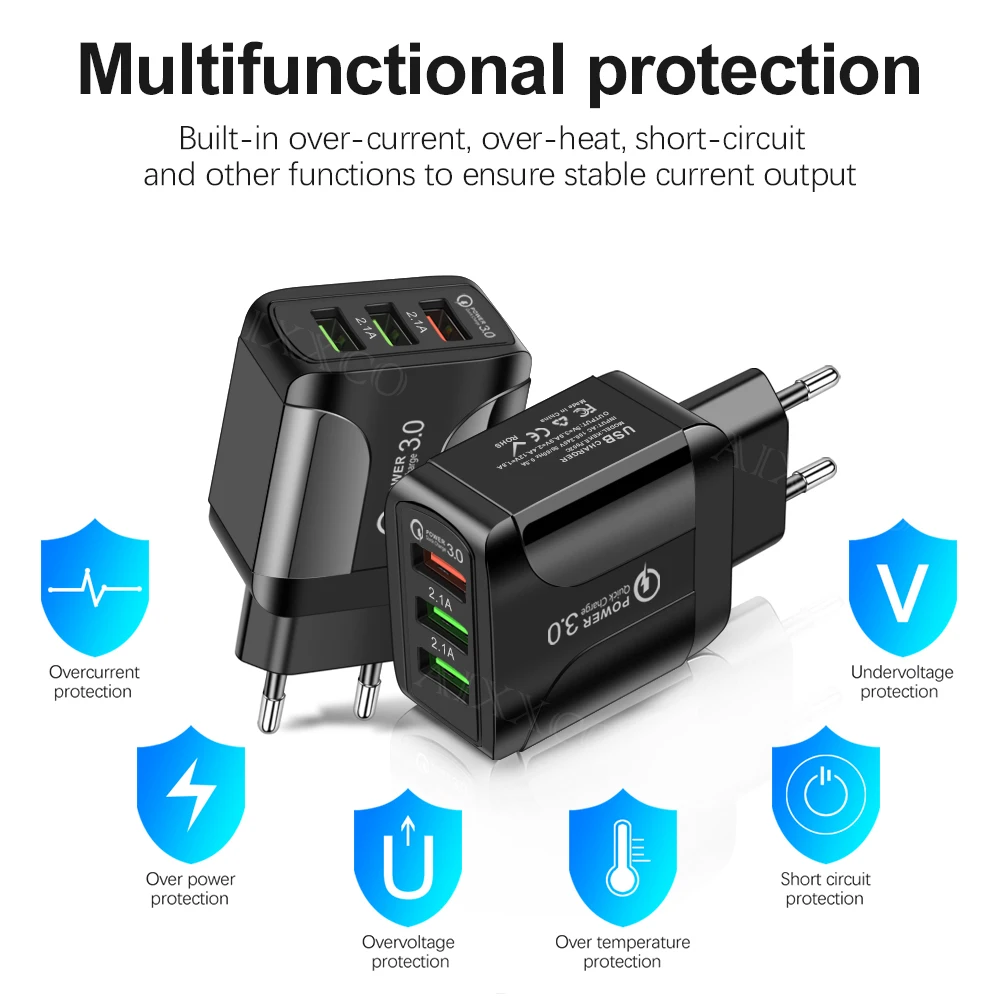 feature 35V3A USB Charger EU Plug Phone Charger