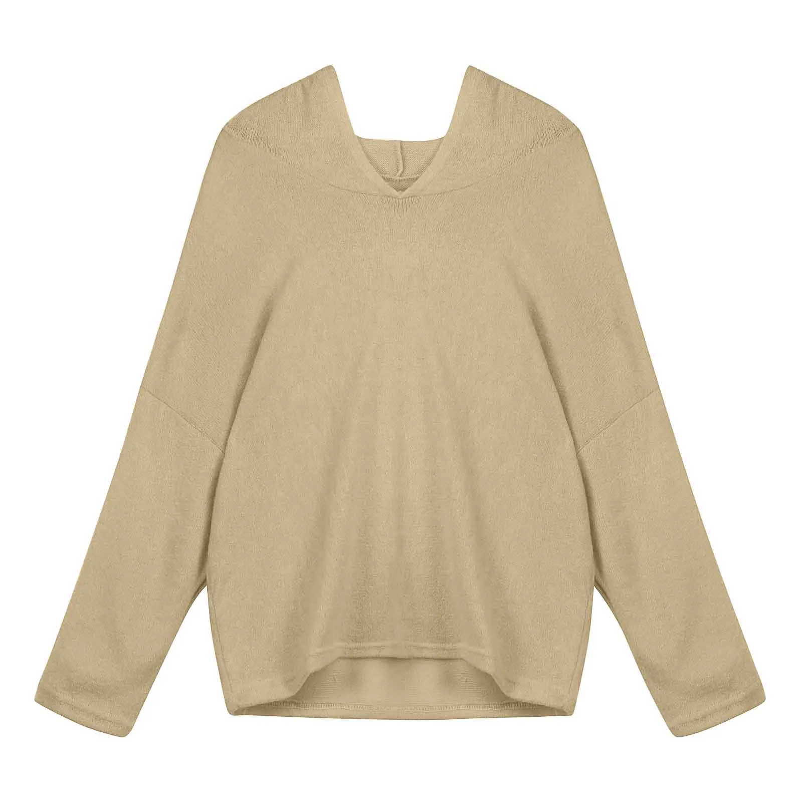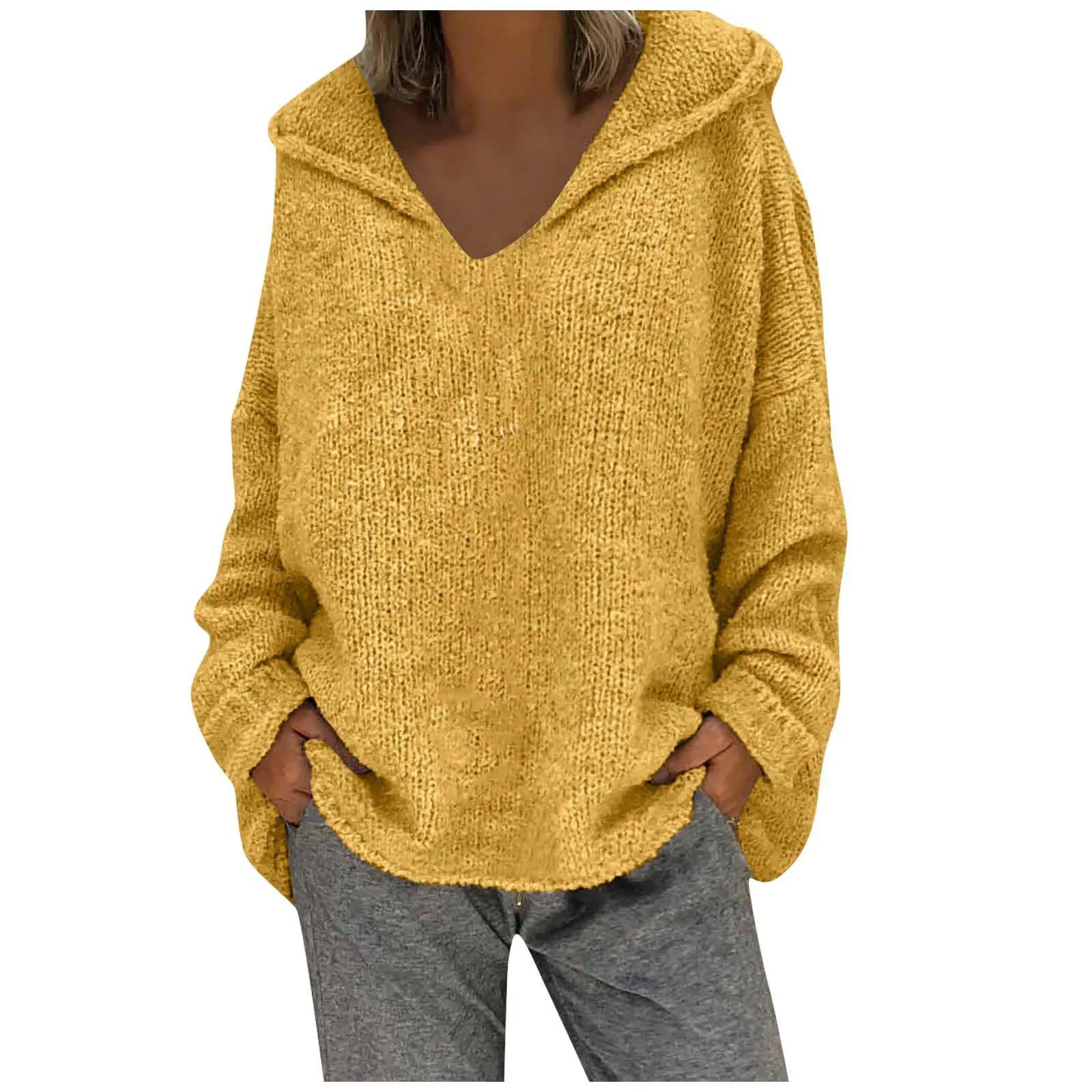 Однотонные свитера для женщин, модный свободный свитер большого размера с капюшоном и длинным рукавом, топы, трикотажные изделия, женская мода, зима 2022