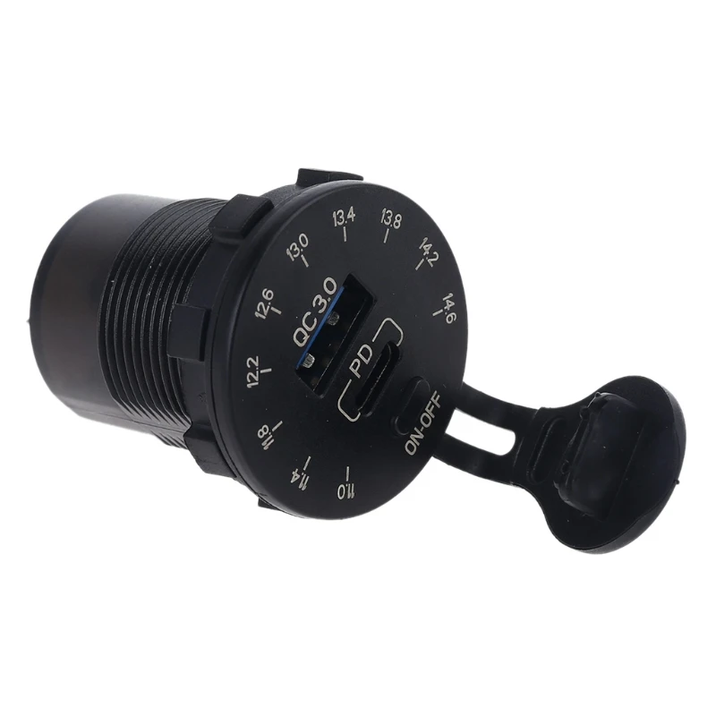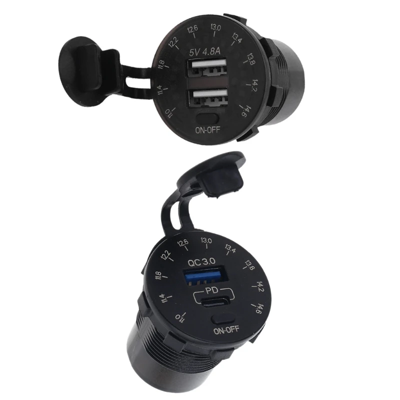 12 В QC3.0 USB Тип C PD автомобильное зарядное устройство Быстрая зарядка светодиодный светодиодным вольтметром вкл. ВЫКЛ. Переключатель