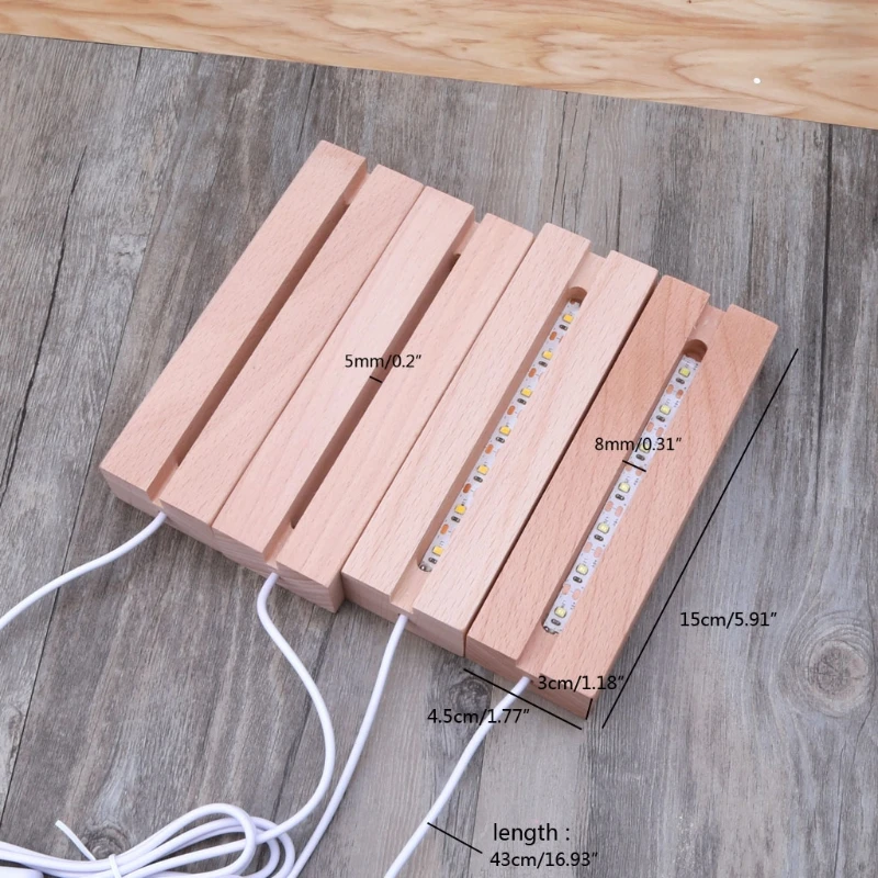 Прямоугольный светодиодный светильник 5 мм, деревянная подставка с ...