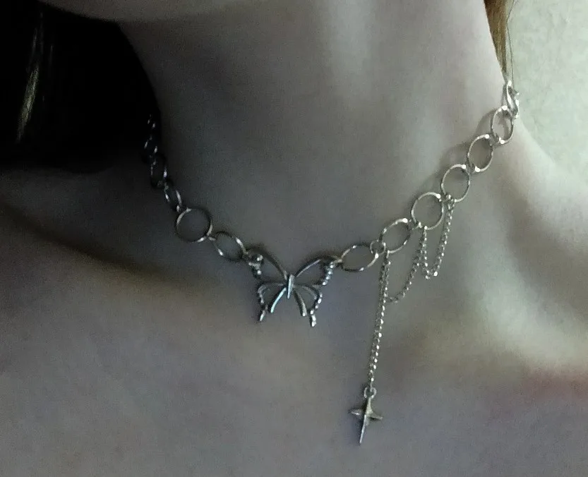 Ожерелье-чокер женское в стиле Харадзюку, с бабочкой