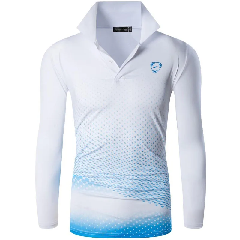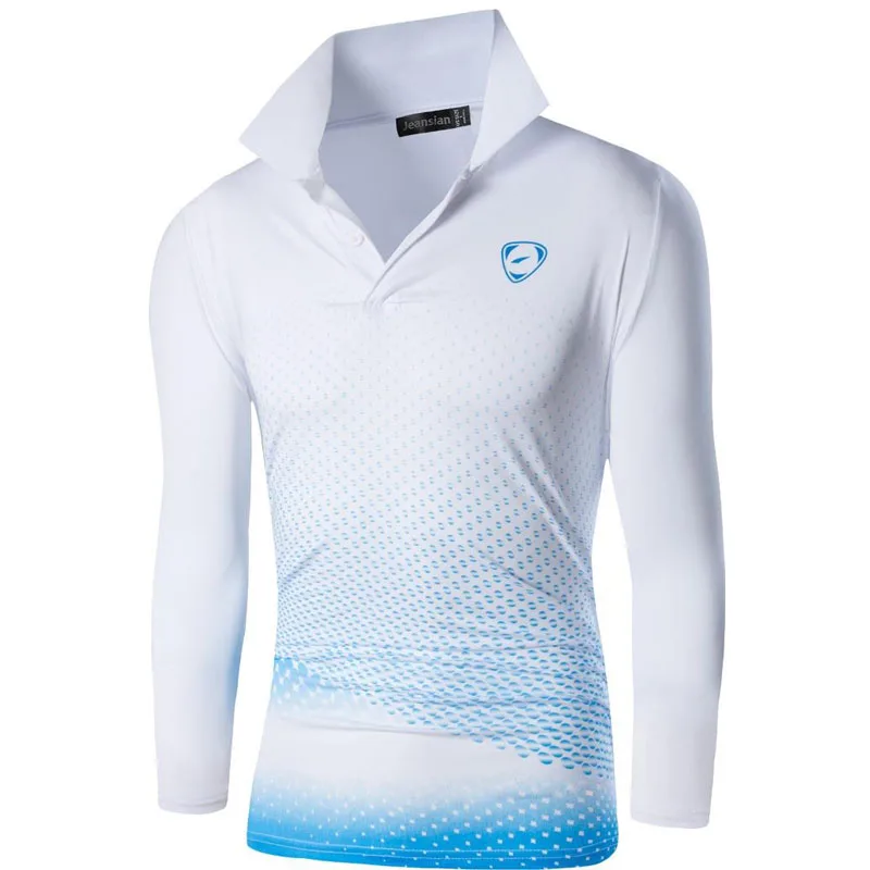Мужская Уличная футболка Jeansian, Пляжная футболка с длинным рукавом, для гольфа, тенниса, боулинга, топы LA300, белого и синего цветов