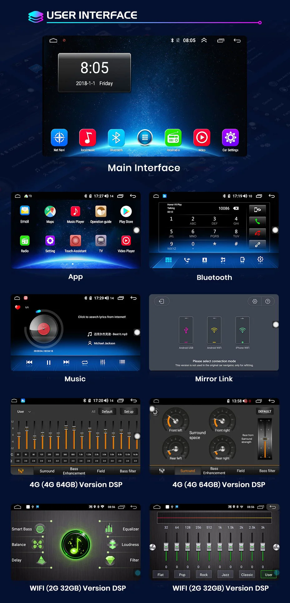 Bulit in CarPlay4G+64G supports, easy to handle iPhone while driving