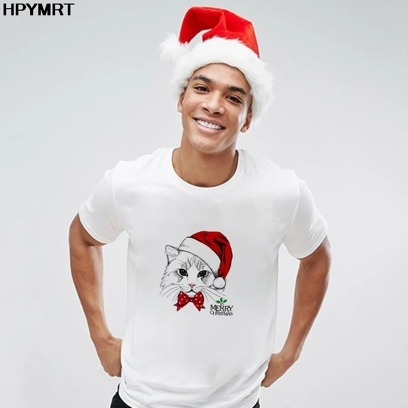 Новинка 2020, футболка с милым котом и рождественской шляпой, белая...