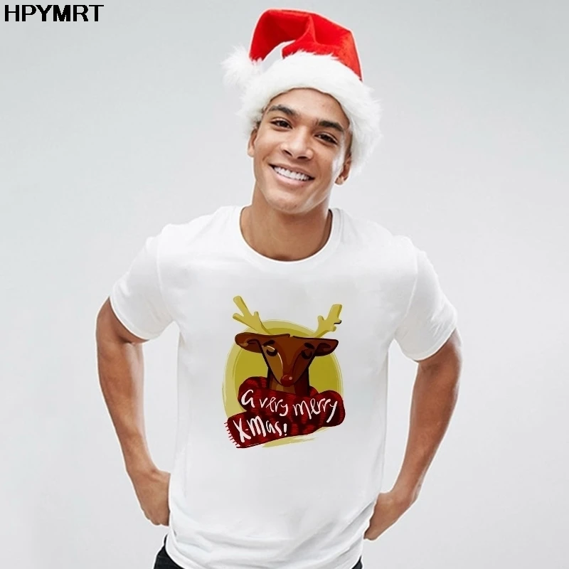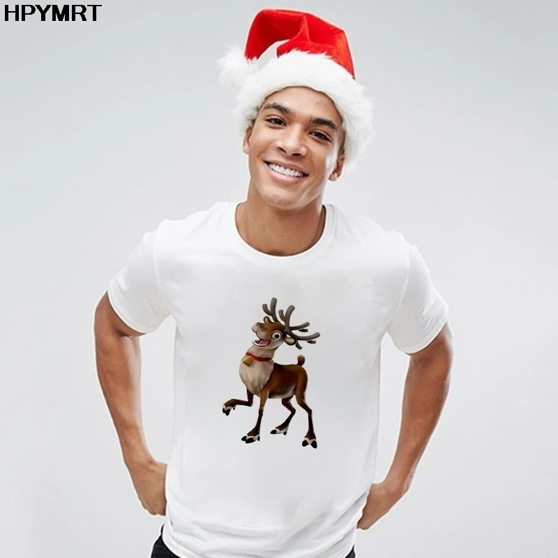 Милая рождественская футболка с оленями, мужская модная футболка с рисунком Kawaii, топ, новинка 2020, эстетическая футболка, мужская одежда, футболка, женская