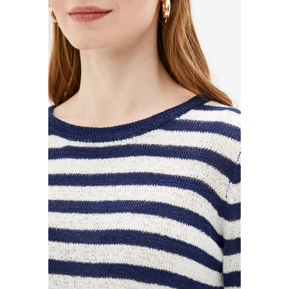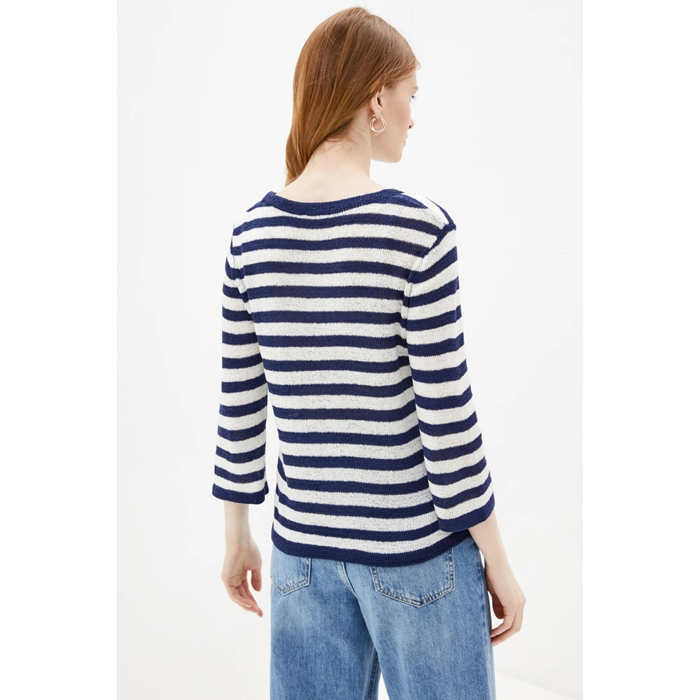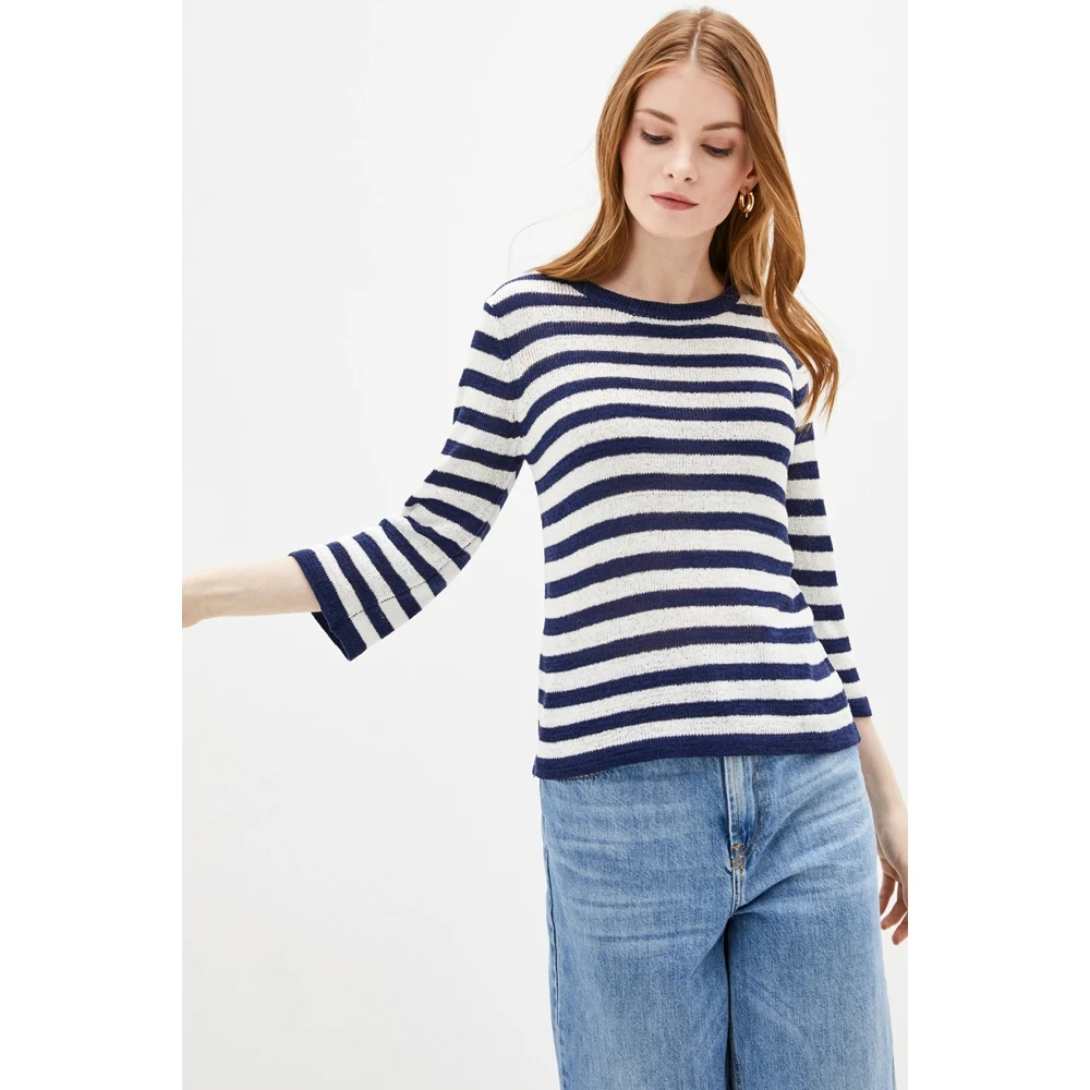 Производитель: Россия. Коллекция: ВЕСНА-ЛЕТО 2020. ~ Вещи с морской полоской - элегантное решение на каждый день. Сине-белый узор давно стал модной классикой, которая вдохновляет на создание лаконичных образов с летним настроением. пряжа с буклированным эффектом воздушная дышащая структура прямой крой с широкими рукавами округлый вырез горловины эластичная окантовка воротника, низа и манжет .