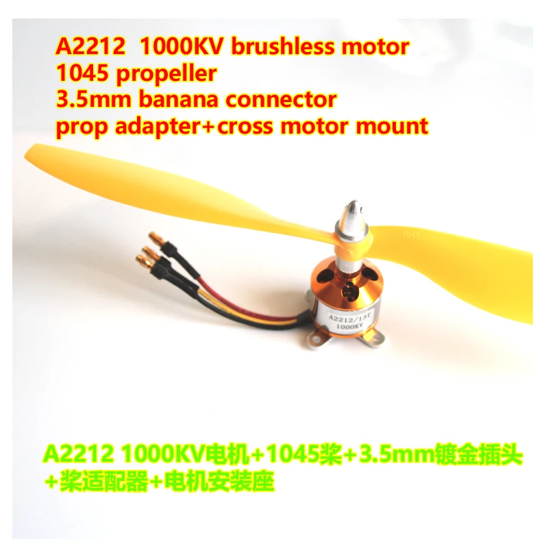 1xбесщеточный двигатель A2212/13T KV930 или KV1000 или KV1400 или 2200 или 2450 или 2700 с банановыми вилками 3,0 мм