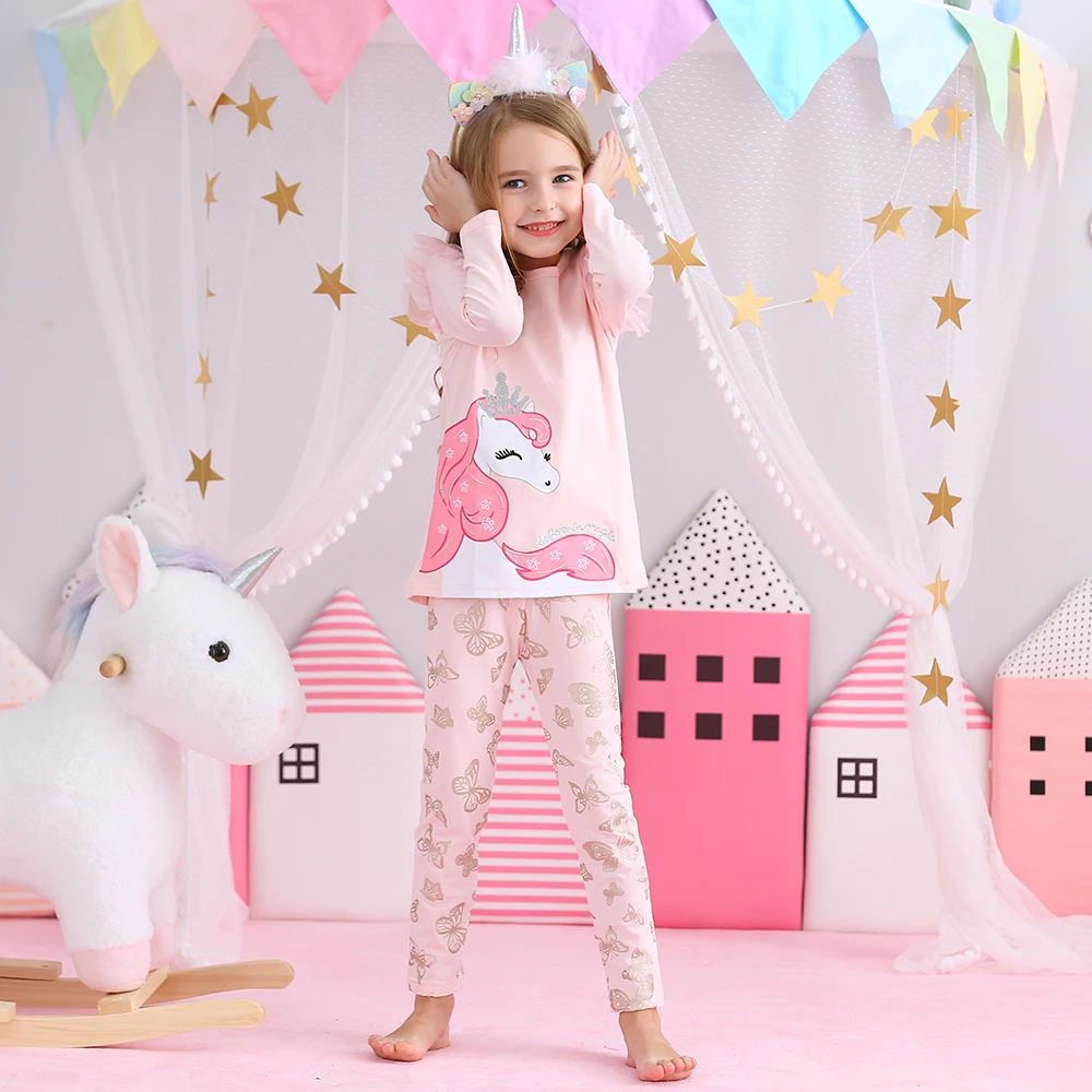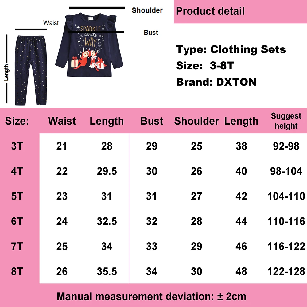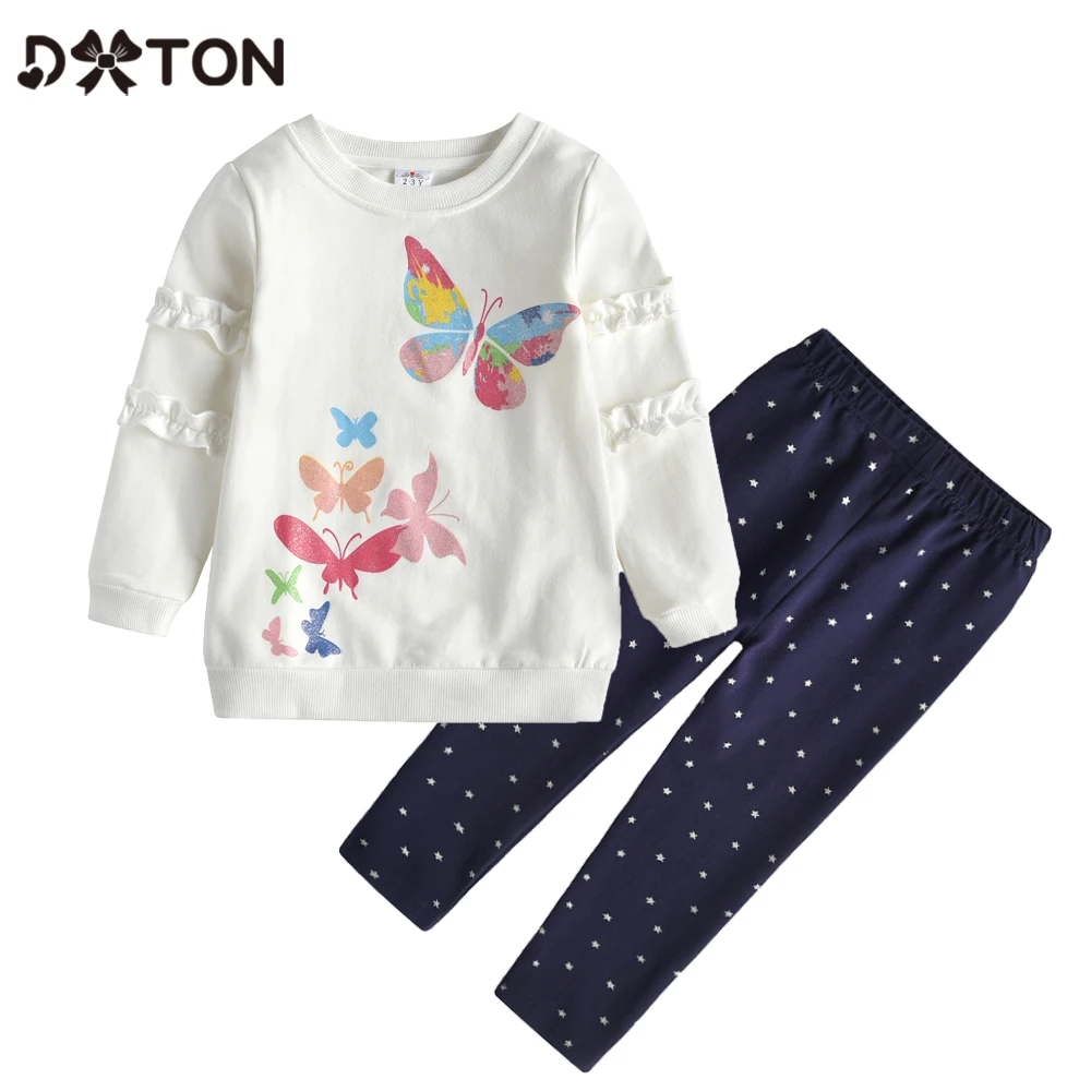 DXTONзимние комплекты одежды для девочек хлопковые детские костюмы для малышей Детские комплекты из 2 предметов с бабочкой футболки с длинными рукавами и штаны с оборками
