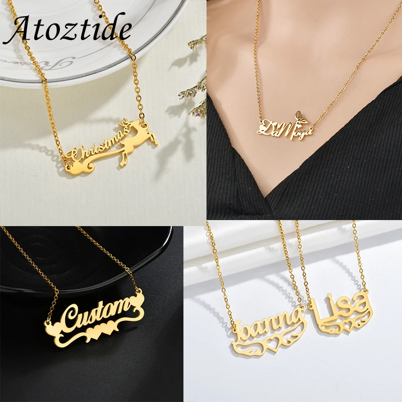Персонализированные ожерелья Atoztide с именем на заказ для женщин и мужчин, золотой цвет, рождественские подарки, чокер, ожерелье, подвеска, табличка, ювелирные изделия